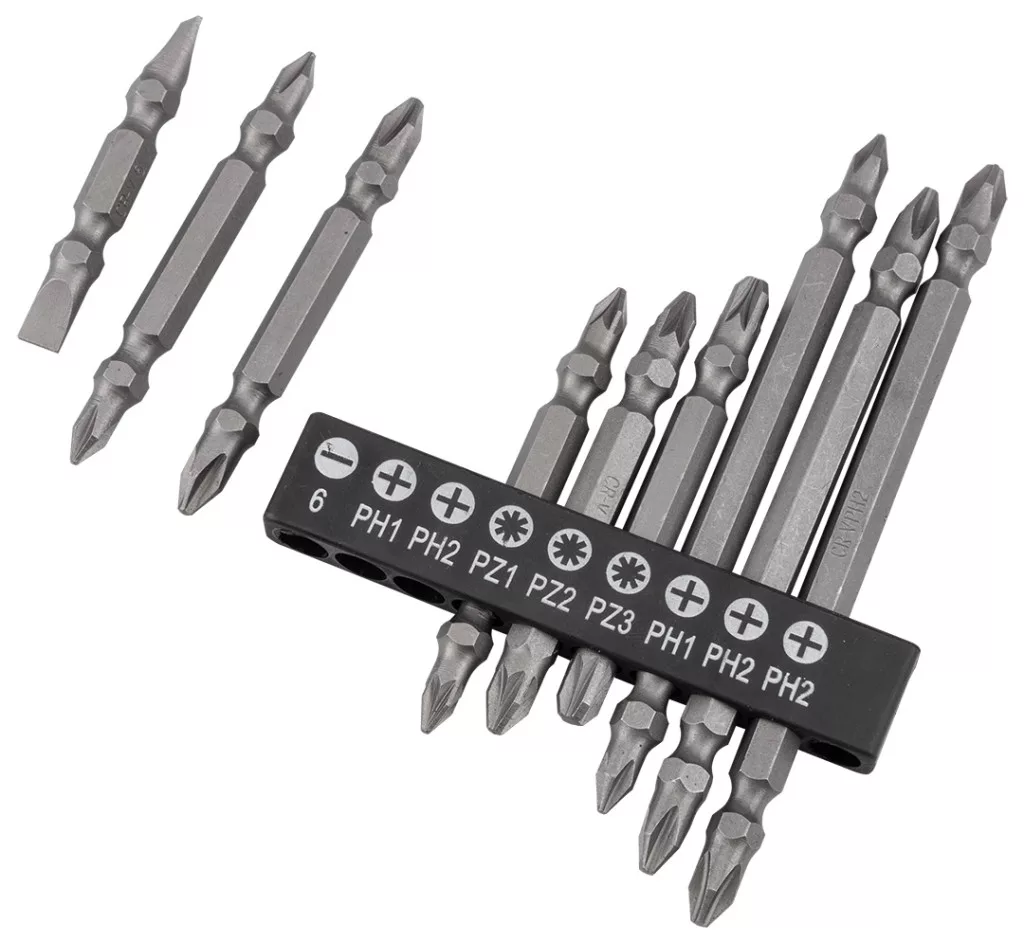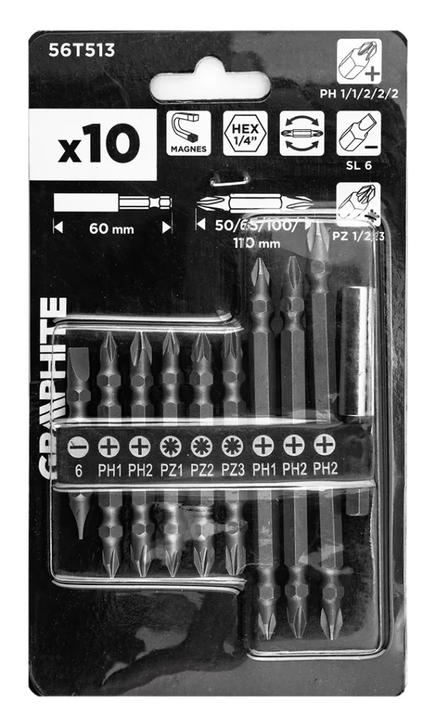 Graphite csavarhúzó bitkészlet kéthegyű, mágneses szárral (10db/készlet)