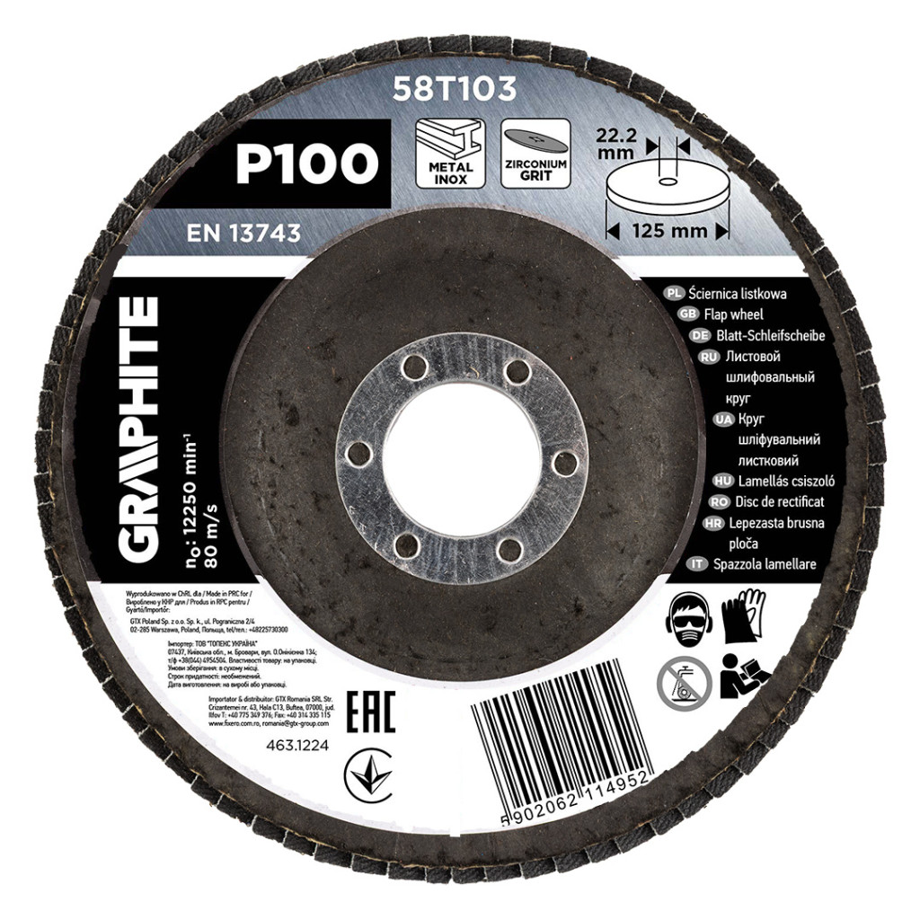 Graphite csiszolókorong lamellás 125x22,2mm, P100 inox, fém, fa