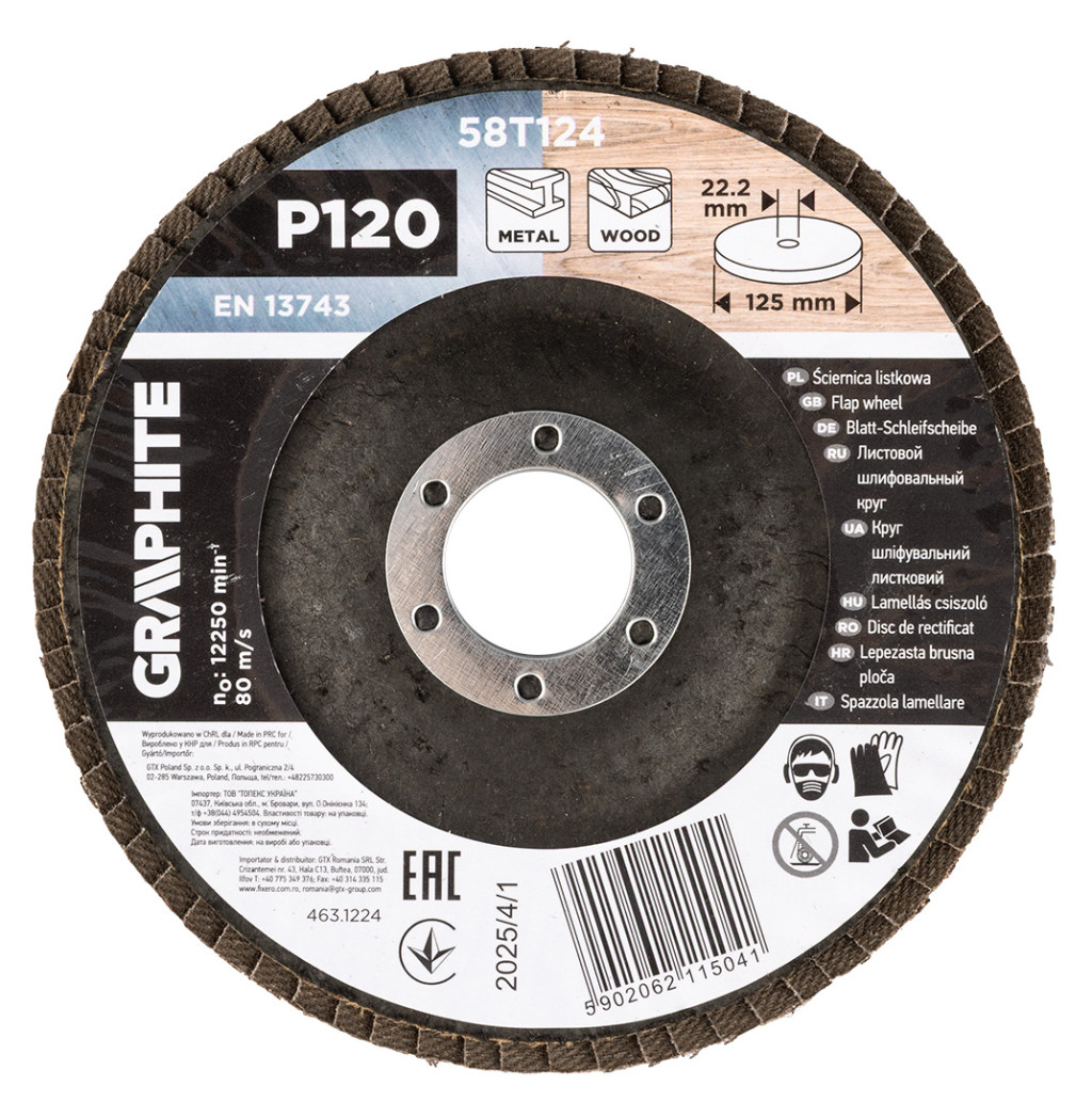 Graphite csiszolókorong lamellás 125x22,2mm, P120 fém, fa