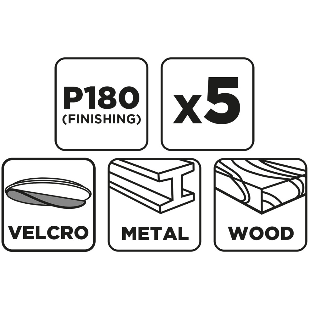 Graphite csiszolókorong tépőzáras 125mm, P180 (5db/csomag)