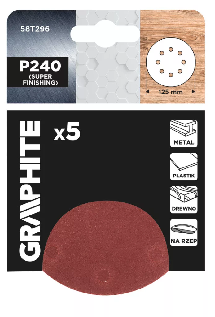 Graphite csiszolókorong tépőzáras 125mm, P240, 8 lyukkal, (5db/csomag)
