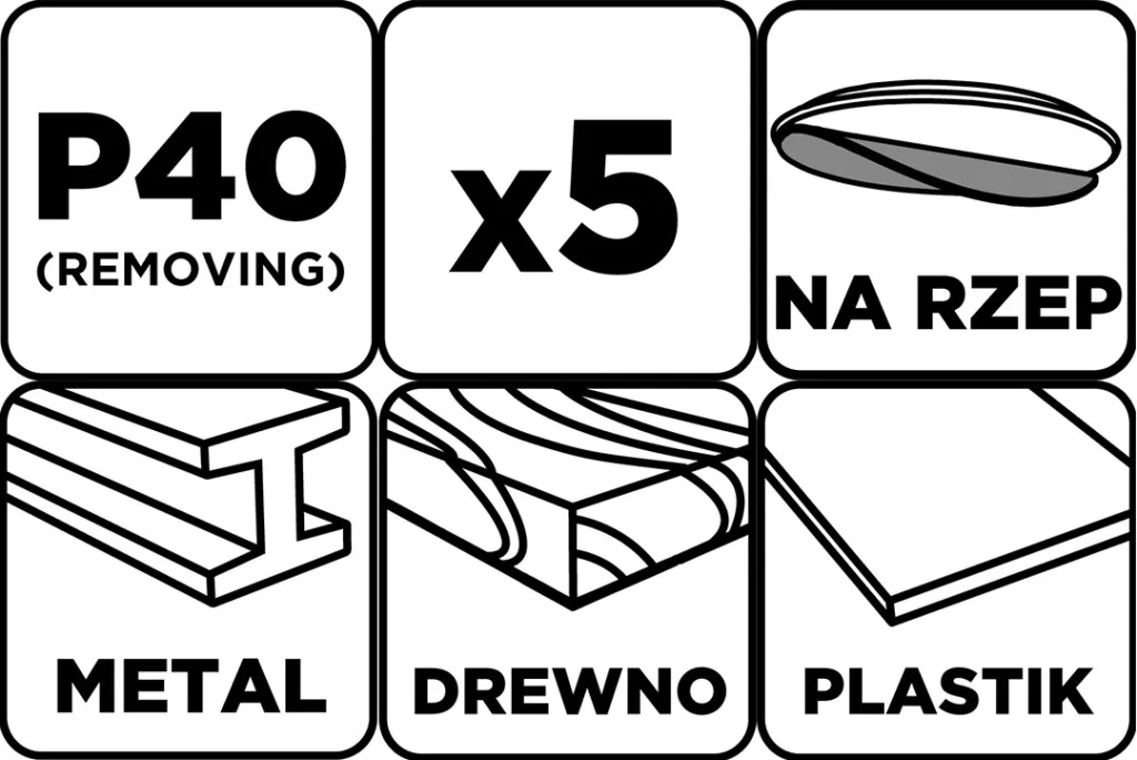 Graphite csiszolókorong tépőzáras 125mm, P40, 8 lyukkal, (5db/csomag)
