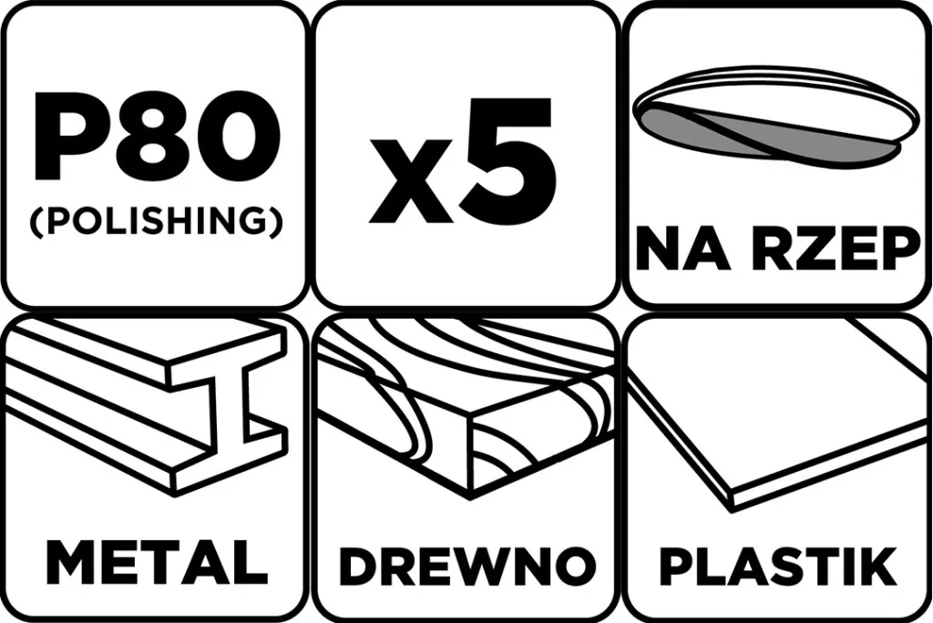 Graphite csiszolókorong tépőzáras 125mm, P80, 8 lyukkal, (5db/csomag)