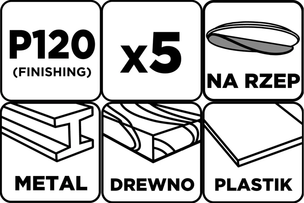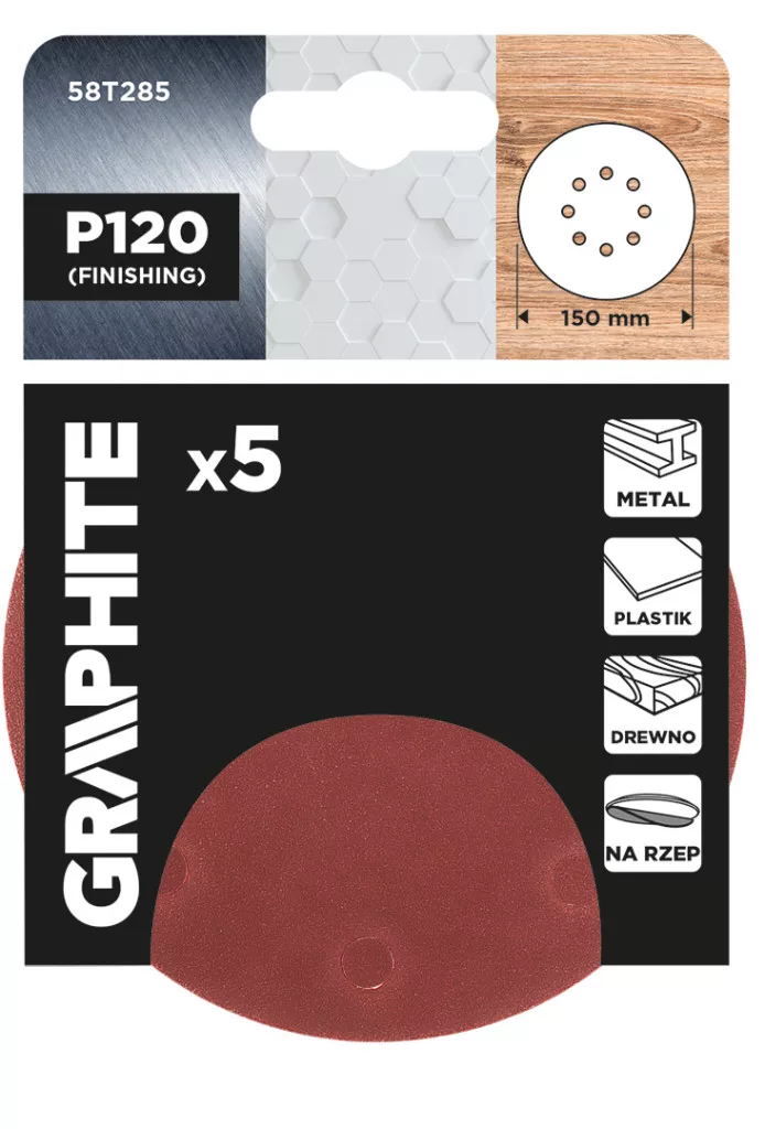 Graphite csiszolókorong tépőzáras 150mm, P120, 8 lyukkal, (5db/csomag)
