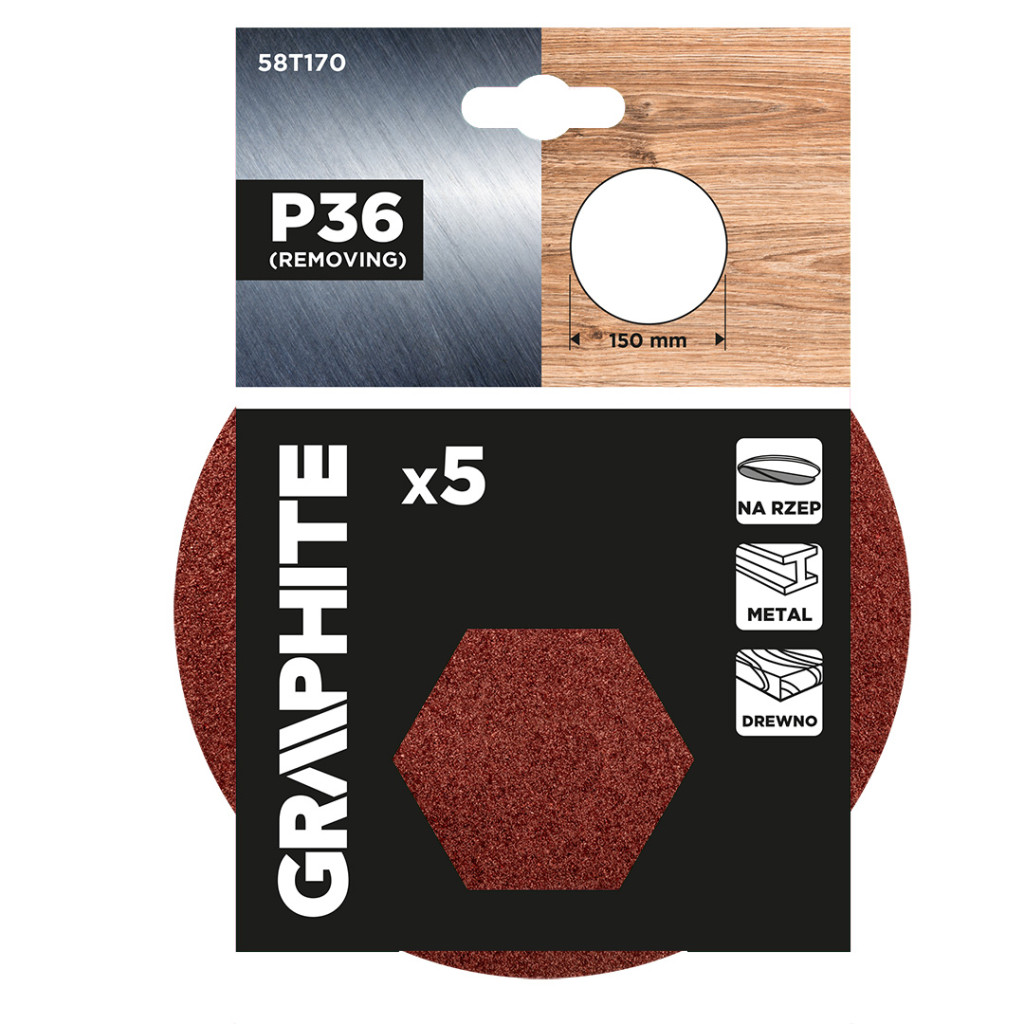 Graphite csiszolókorong tépőzáras 150mm, P36 (5db/csomag)