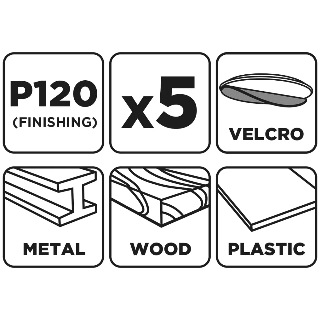 Graphite csiszolópapír tépőzáras 93x185mm, P120, 8 lyukas (5db/csomag)