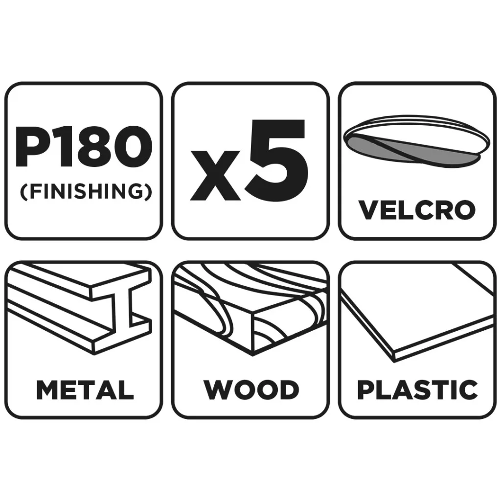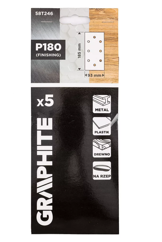 Graphite csiszolópapír tépőzáras 93x185mm, P180, 8 lyukas (5db/csomag)