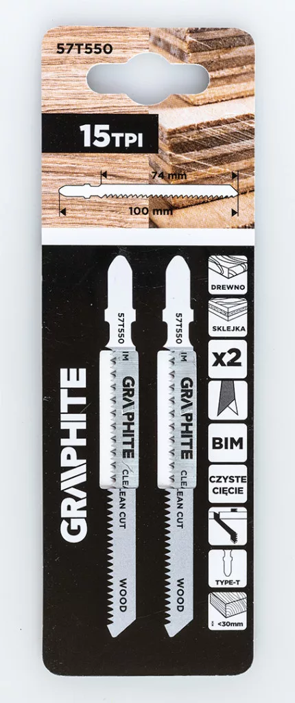 Graphite dekopírfűrészlap, T-befogó, BIM, 14TPI, 74/100mm, fa-rétegelt lemez (2db/csomag)