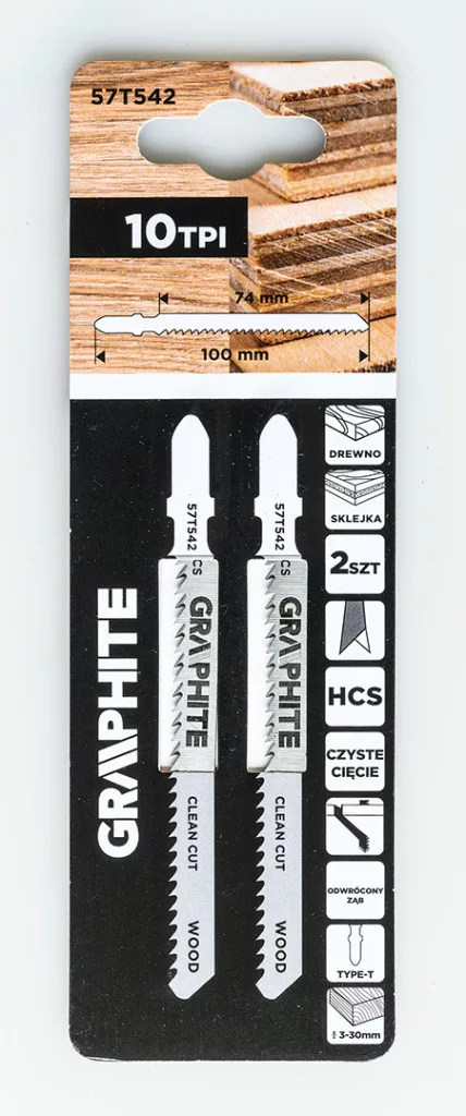 Graphite dekopírfűrészlap, T-befogó, HCS, 10TPI, 74/100mm, fa-rétegelt lemez (2db/csomag)