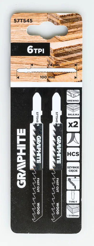 Graphite dekopírfűrészlap, T-befogó, HCS, 6TPI, 74/100mm, fa-rétegelt lemez (2db/csomag)
