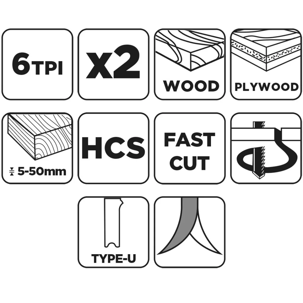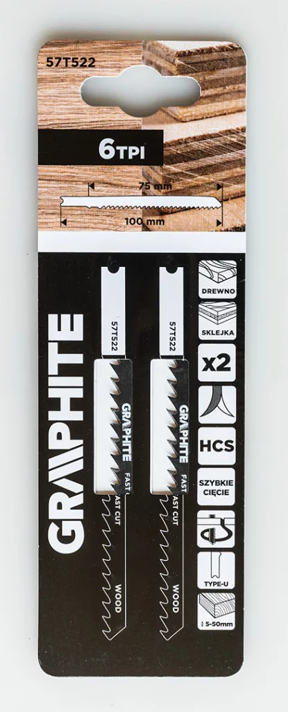 Graphite dekopírfűrészlap, U-befogó, HCS, 6TPI, 75/100mm, fa-rétegelt lemez (2db/csomag)