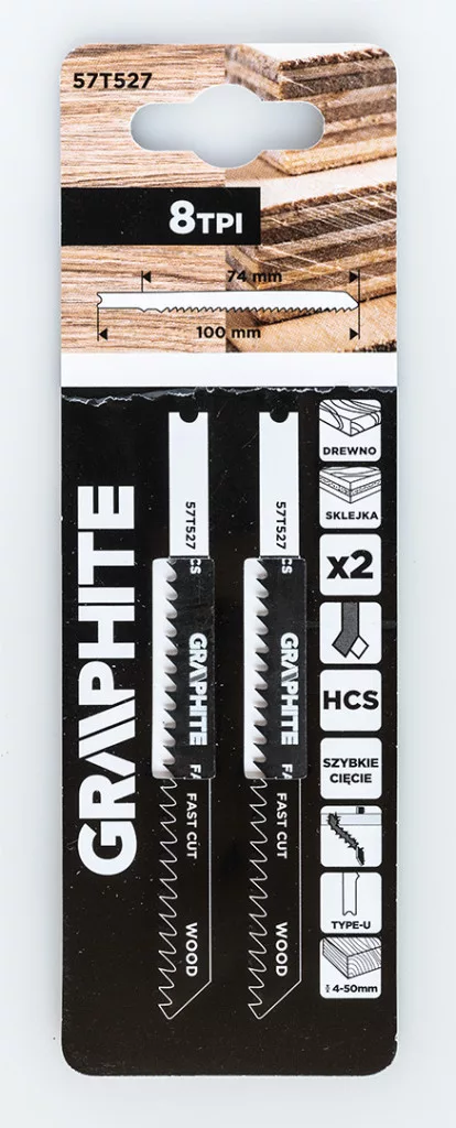 Graphite dekopírfűrészlap, U-befogó, HCS, 8TPI, 74/100mm, fa-rétegelt lemez (2db/csomag)