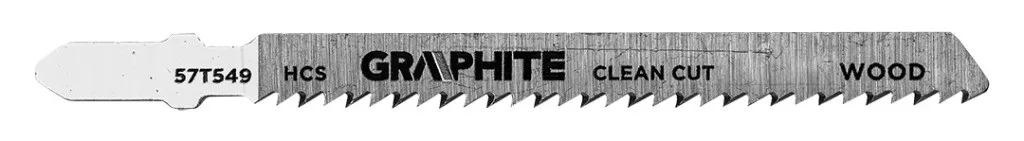 Dekopírfűrészlap készlet, 6 TPI, 10 TPI, HCS, T-befogású, 5 darab 57T551 by Graphite egy készlet, amely HCS és T-befogásúú dekopírfűrészlapokból áll, kétféle típusban: dekopírfűrészlapok 57T548 by Graphite (2 darab), fogazási sűrűséggel 6 TPI, teljes hossz 100 mm, munkahossz: 74 mm, szélesség: 8 mm, vastagság: 8 mm, szélesség: 8 mm, szélesség: 8 mm, vastagság: 8 mm, vastagság: 8 mm, vastagság: 8 mm: 1,5 mm és fogköz: 4 mm. Ezt a pengét a puhafa, forgácslap, rétegelt lemez, farostlemez (10-45 mm) esetében történő felhasználás jellemzi. Valamint az 57T549 (3 db), 10 TPI fogsűrűségű, teljes hossza: 100 mm, munkahosszúságú szúrófűrészlapok: 74 mm, szélesség: 8 mm, vastagság: 8 mm: 1,5 mm és fogköz: 2,5 mm. Ennek a modellnek az alkalmazási területei: puhafa, forgácslap, ácsréteg, farostlemez (3-30 mm), műanyag/epoxi (átmérő <30 mm). Mindkét GRAPHIE fűrészlap tiszta vágást biztosít.