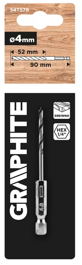 Graphite fafúró 1/4" hatszög szárral, 4mm