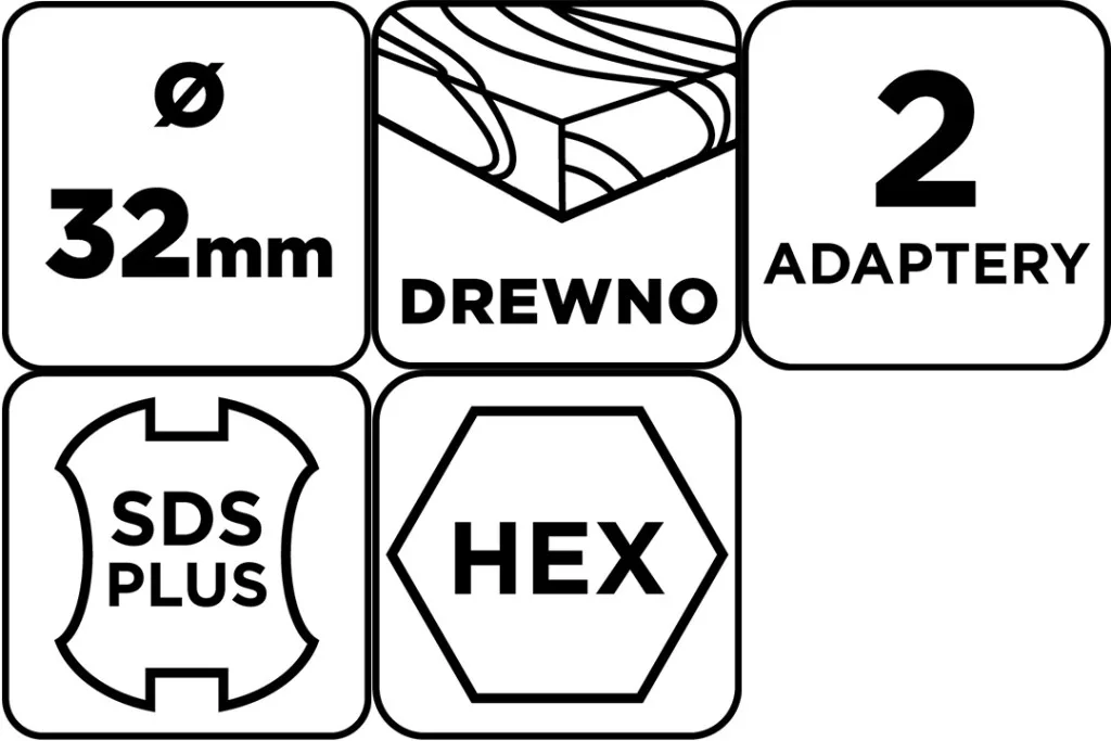Graphite fahasító fúró, kúpos, 32mm, SDS Plus és hatszög szárral