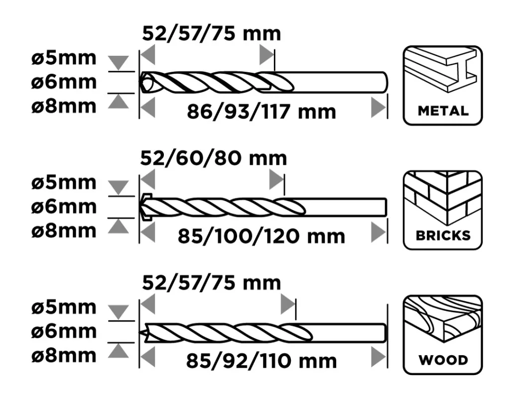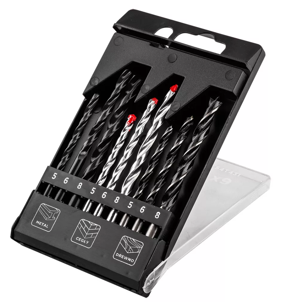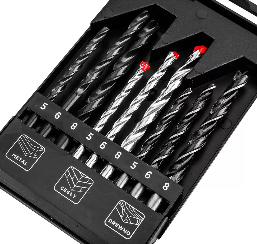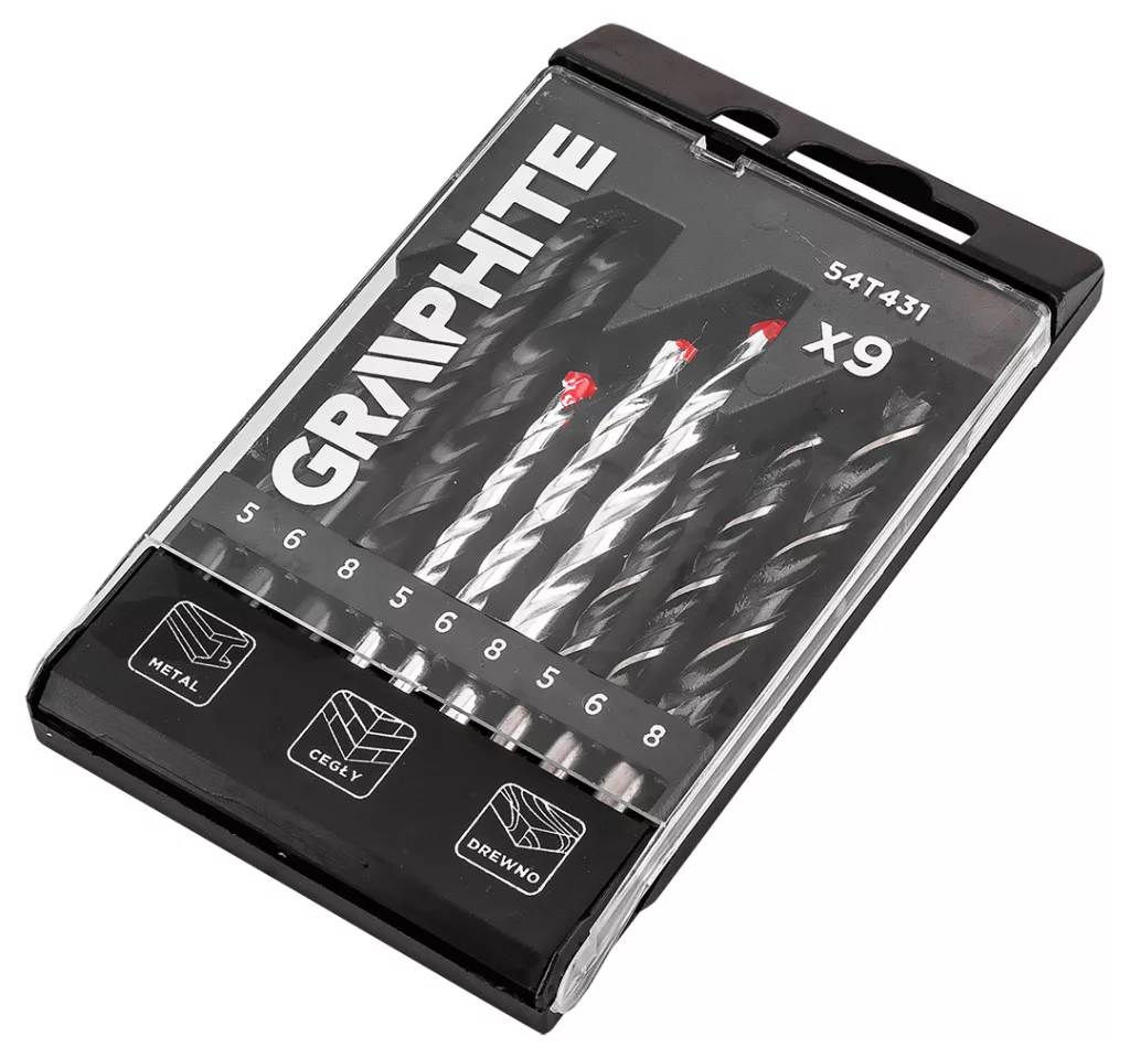 Graphite fúrókészlet, fém, fa, kőzetfúrókkal, 5, 6, 8mm (9db/csomag)