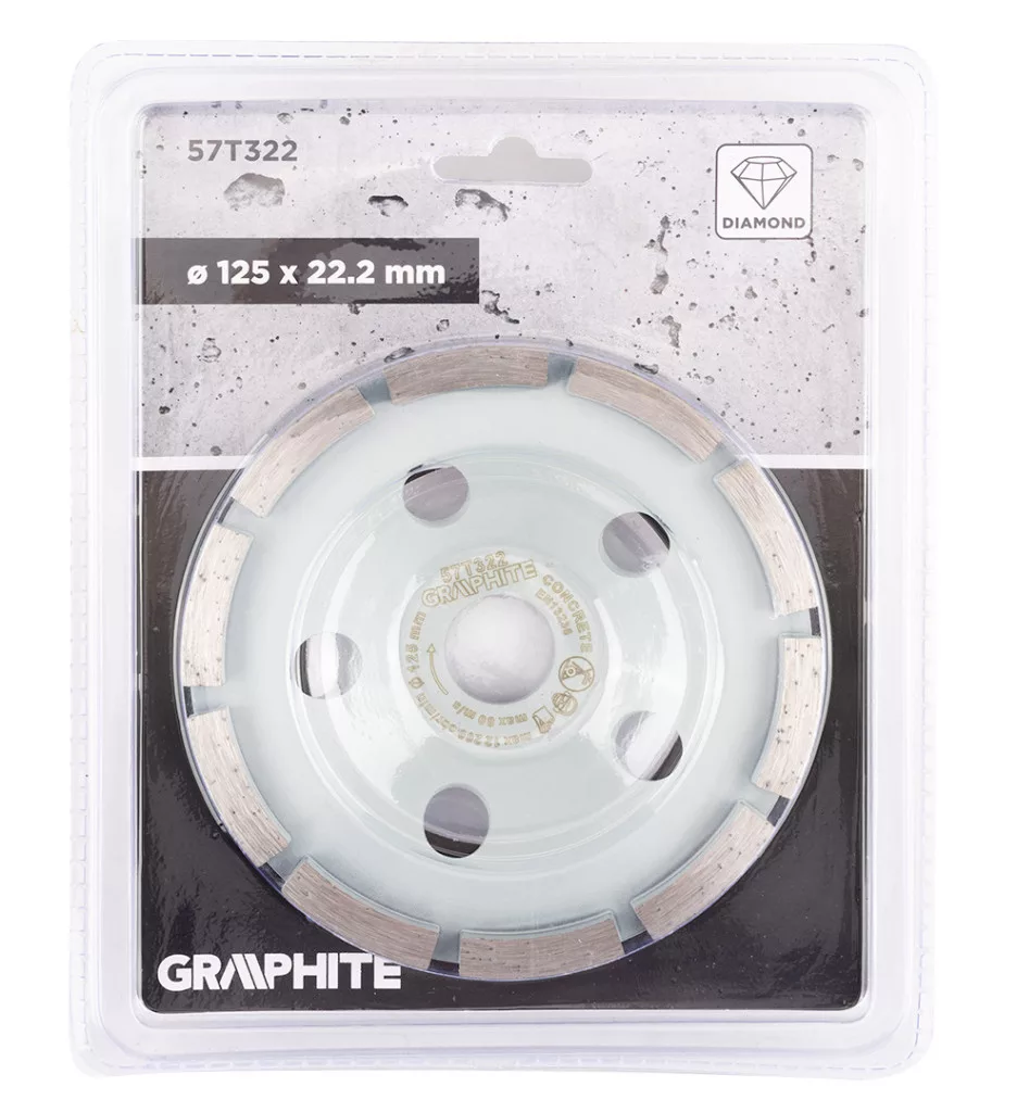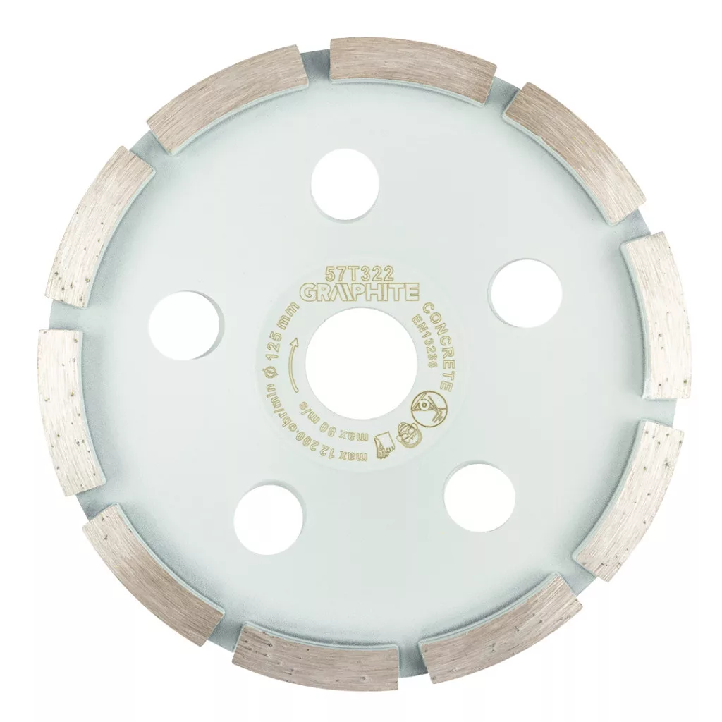 Graphite gyémánt csiszolókorong 125x22,2mm, szegmenses, 1 soros, száraz