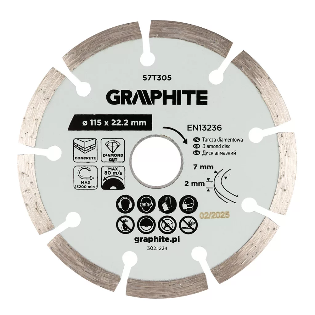 Graphite gyémánt vágókorong 115x22,2mm, szegmenses, száraz