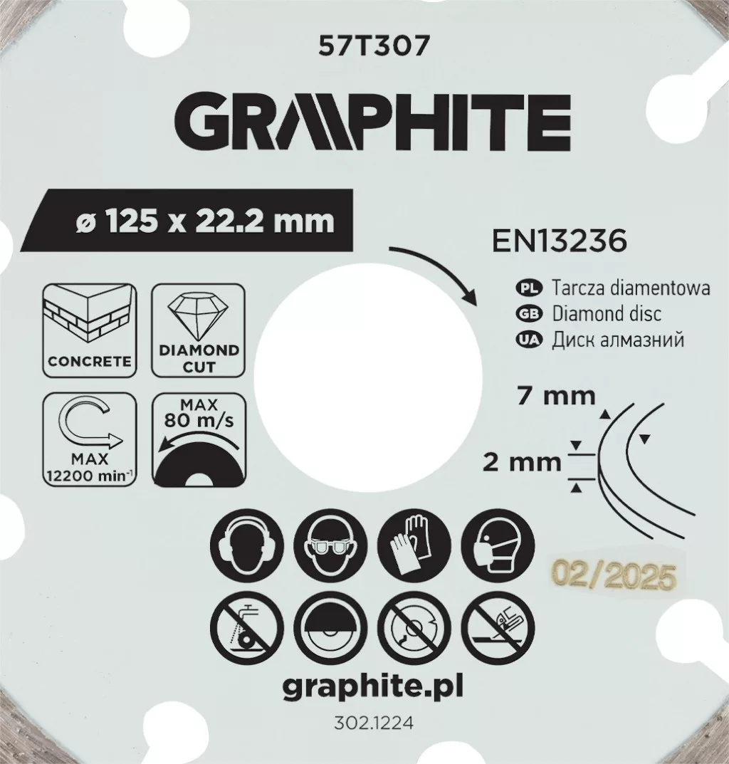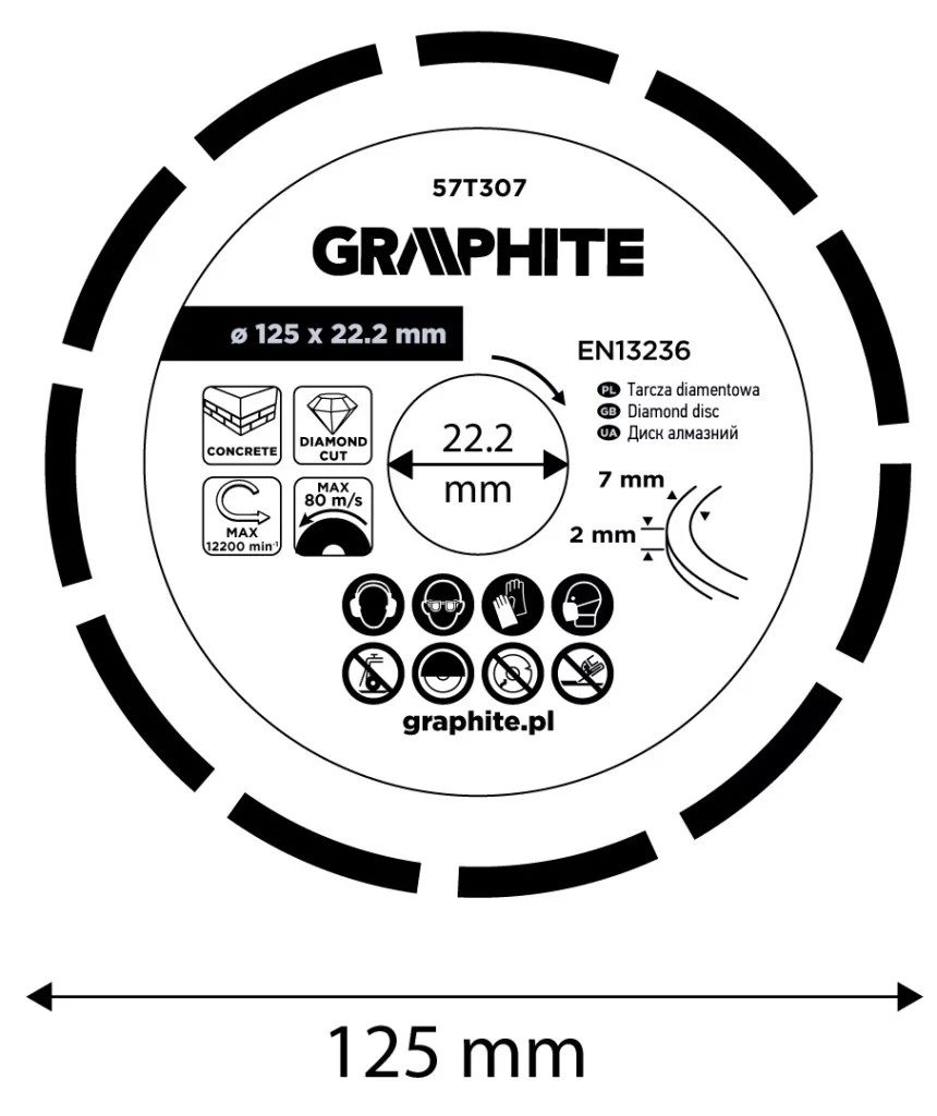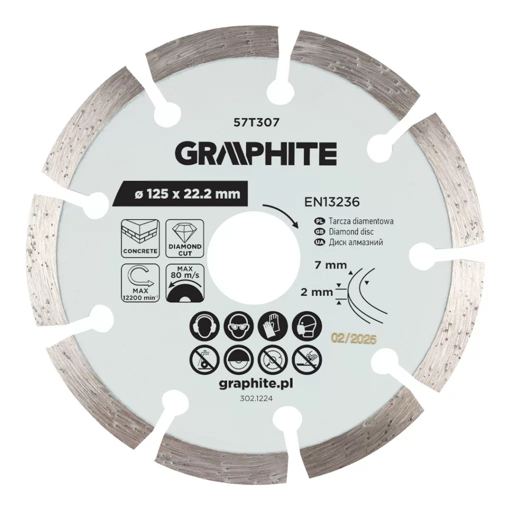 Graphite gyémánt vágókorong 125x22,2mm, szegmenses, száraz