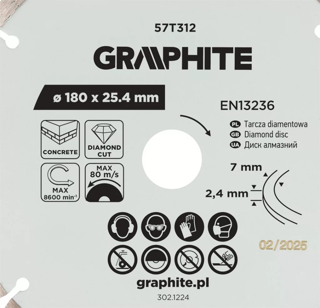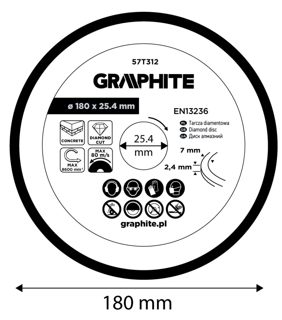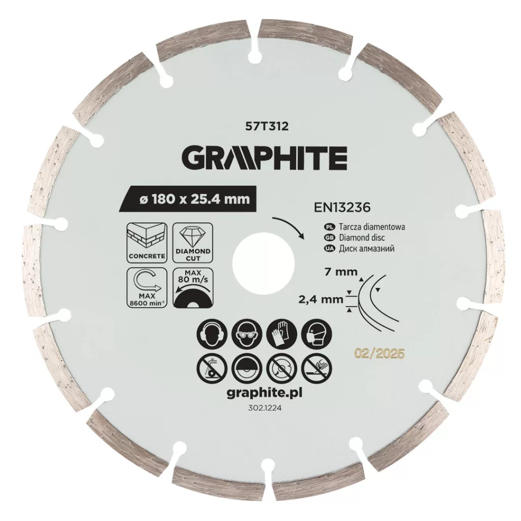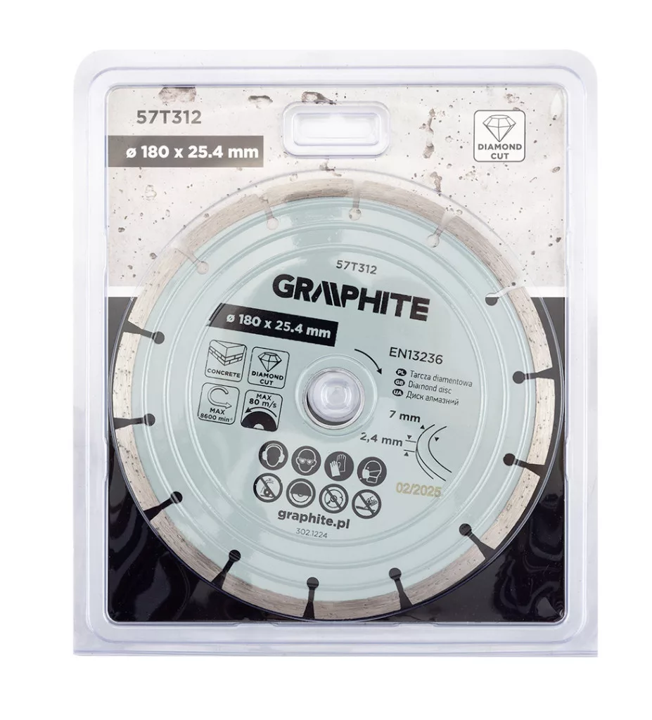 Graphite gyémánt vágókorong 180x25,4mm, szegmenses, száraz
