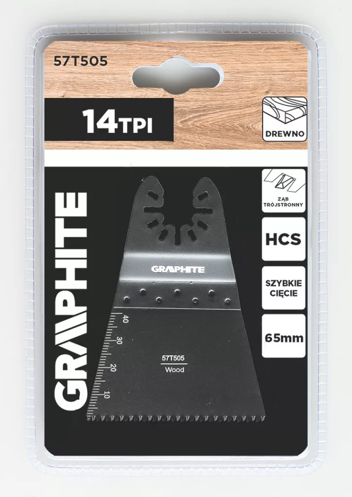 Graphite multigép, rezgőgép lap, HCS, 14TPI, 65mm, egyenes merülőfűrész, 3oldalon élezett fogak, fához