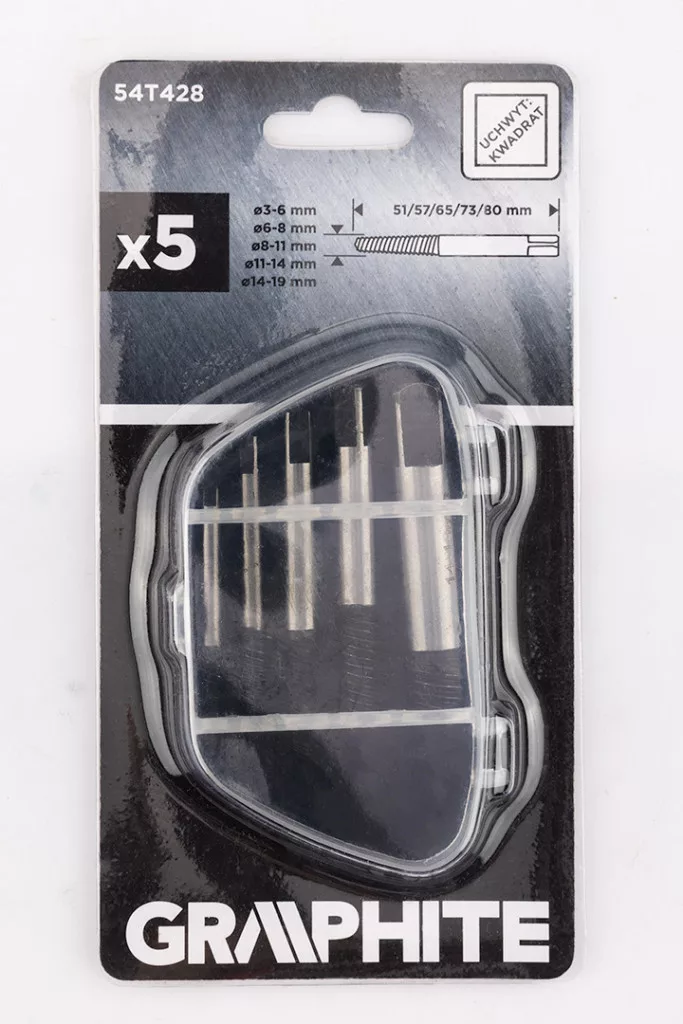 Graphite törtcsavar kihajtó készlet, 4szög vég, 3-19mm, (5db/csomag)