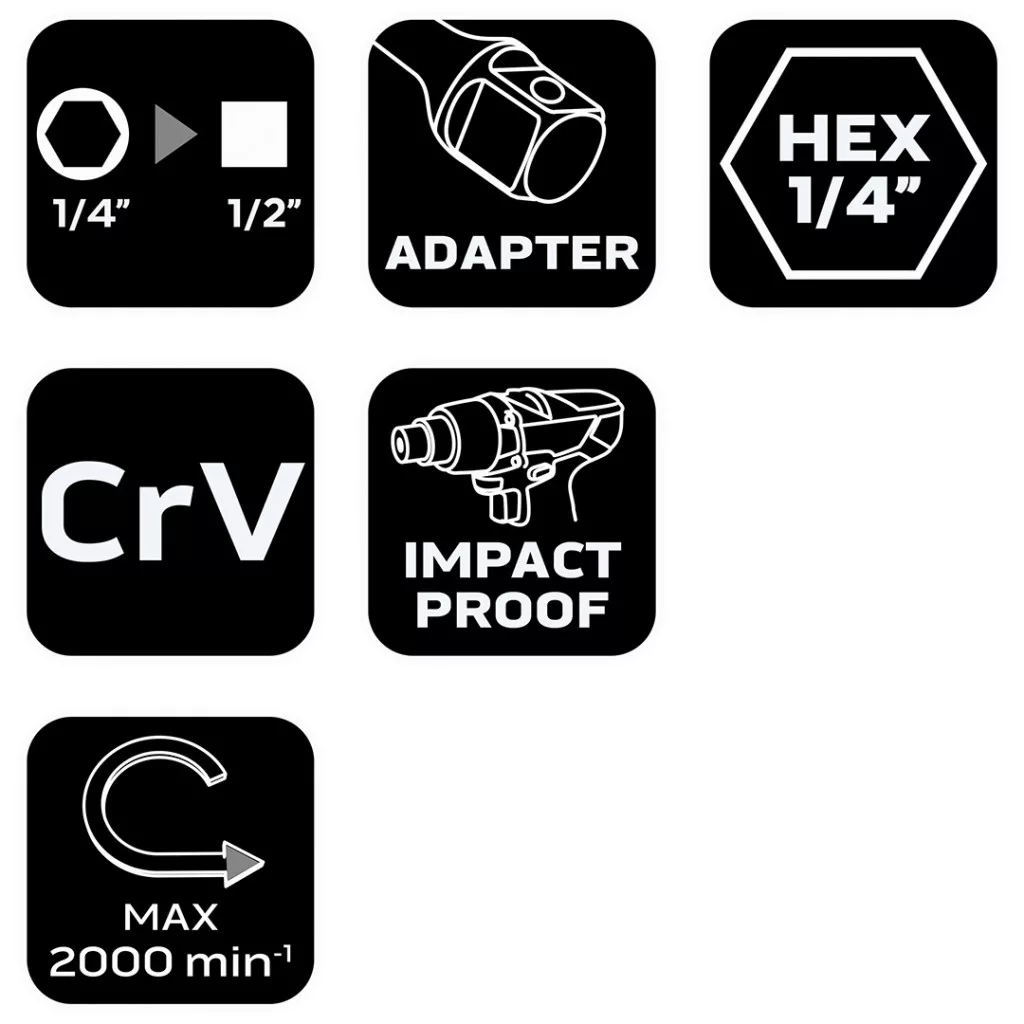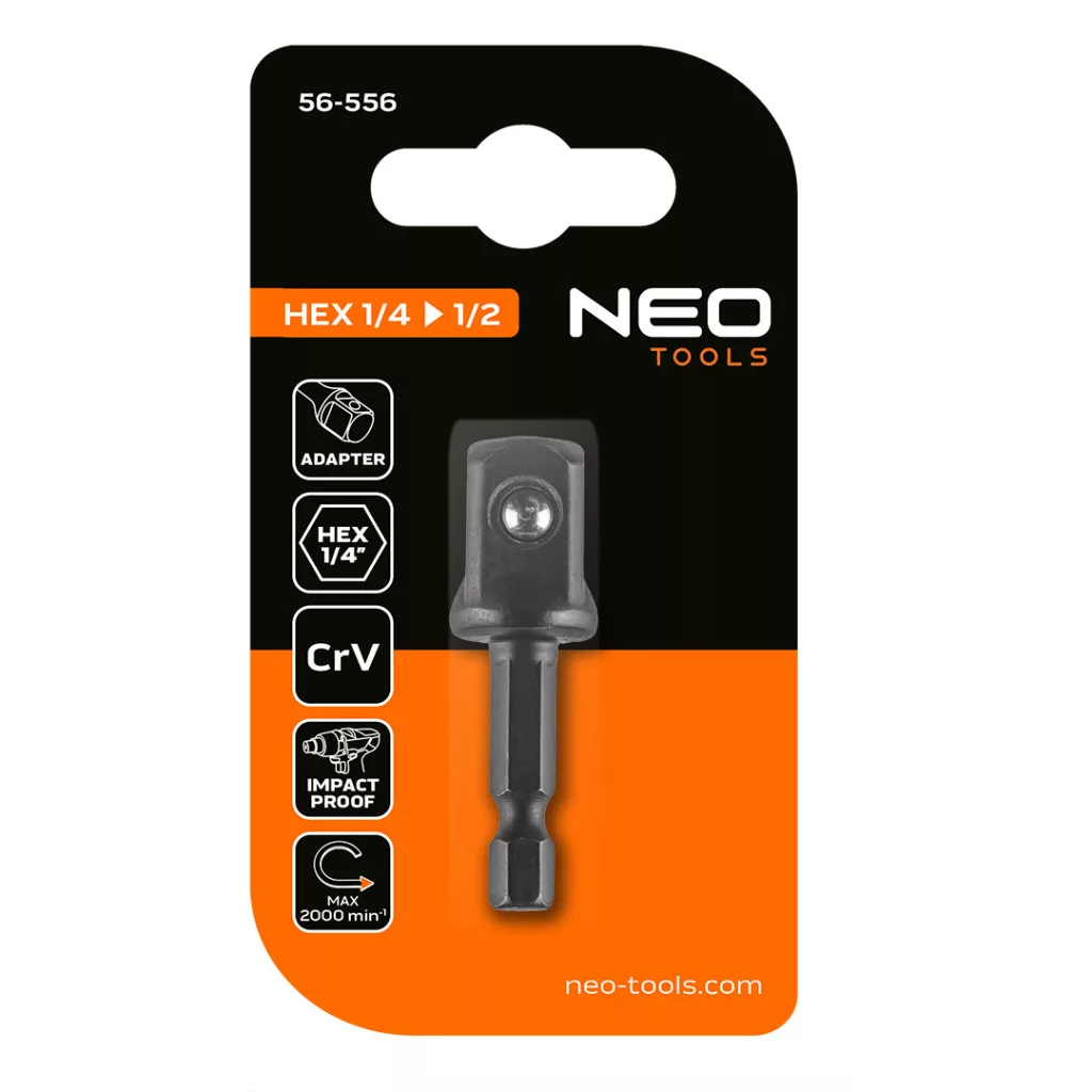 Neo adapter csavarbehajtókhoz 1/4" hatlapú-1/2" négyszög