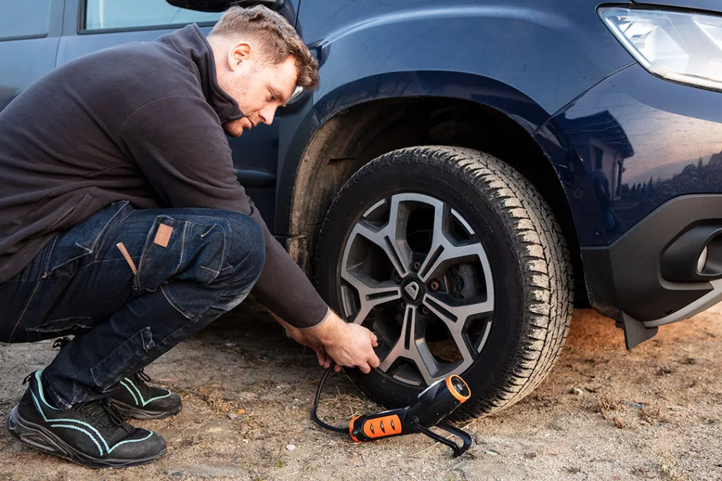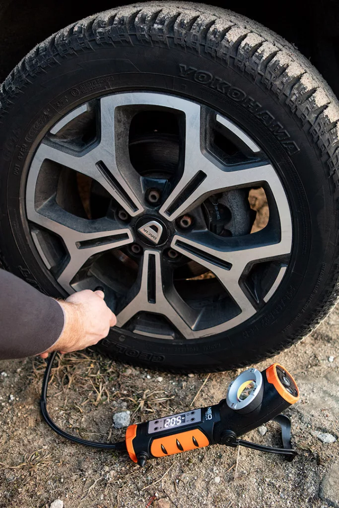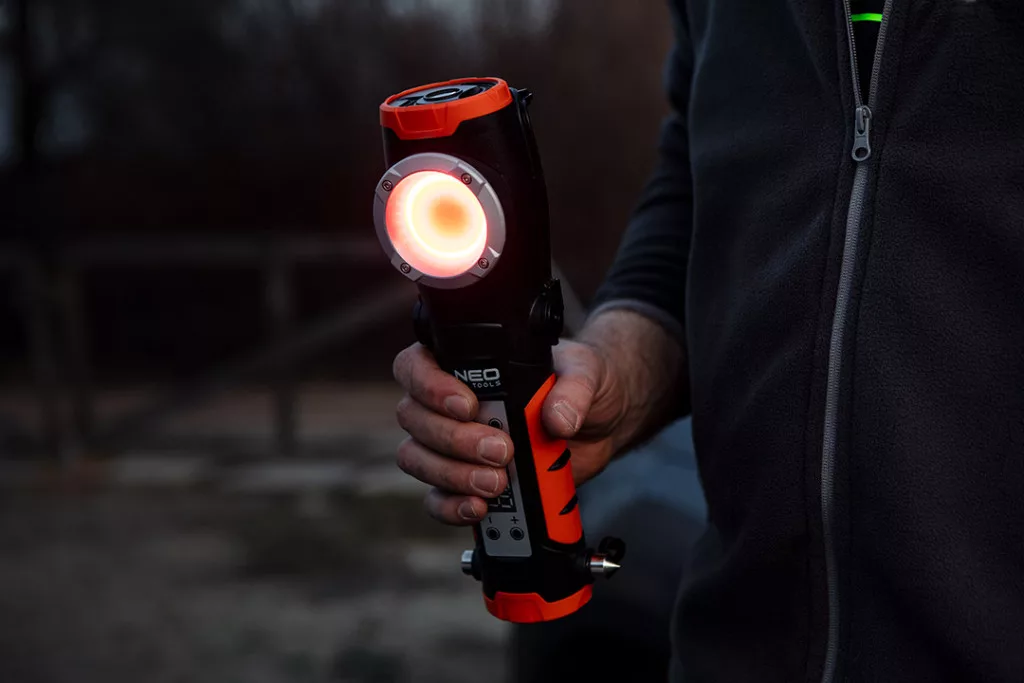 Neo akkus kompresszor és lámpa, 2000mAh akku, 800+400lum fényerő, max 10bar nyomás, USB és autós töltő