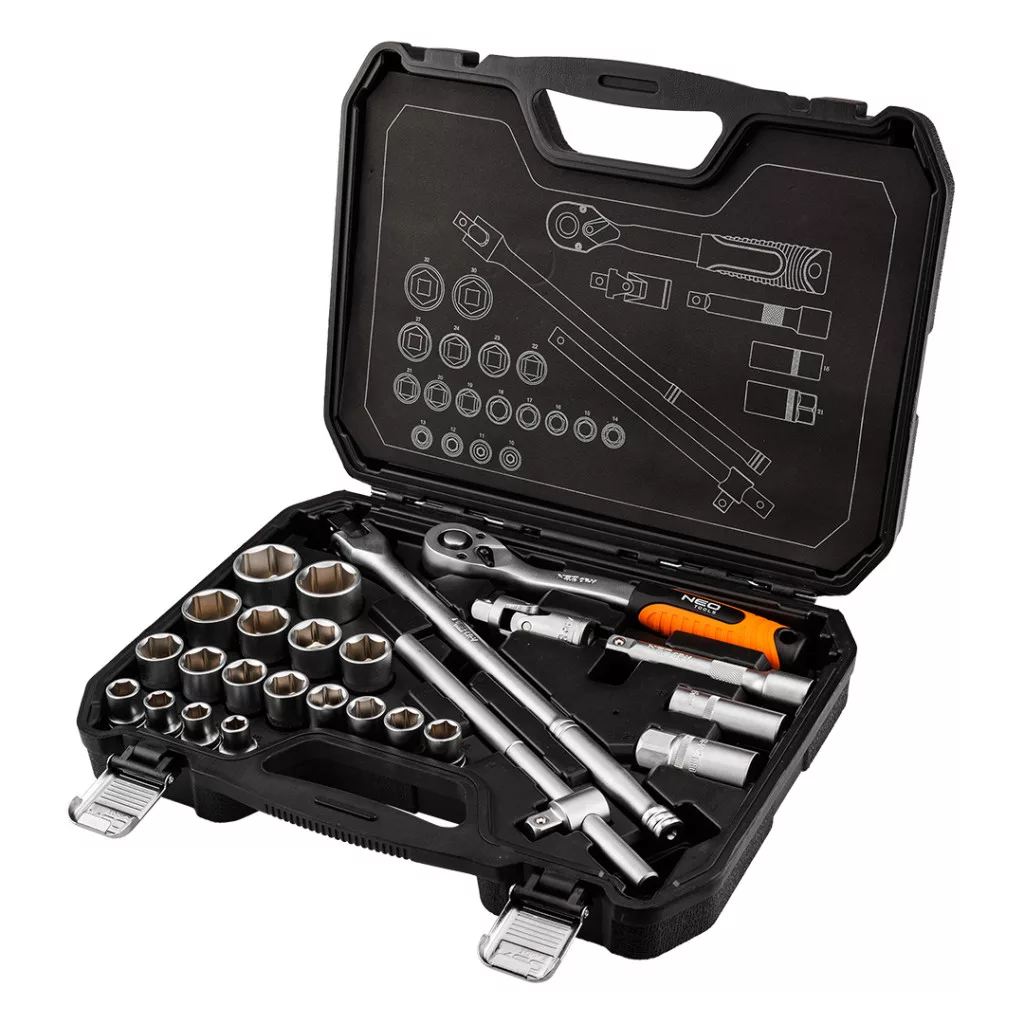 Neo dugókulcs és hajtószár készlet, matt felület (25db/készlet)