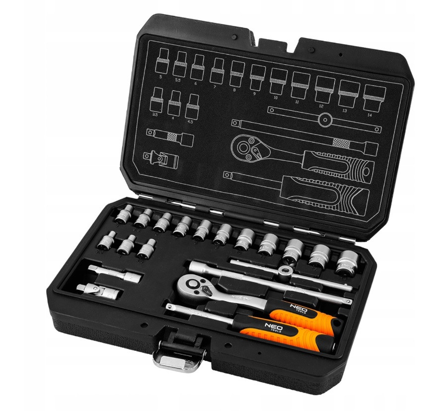 Neo dugókulcskészlet, 1/4", matt felület (20db/készlet)