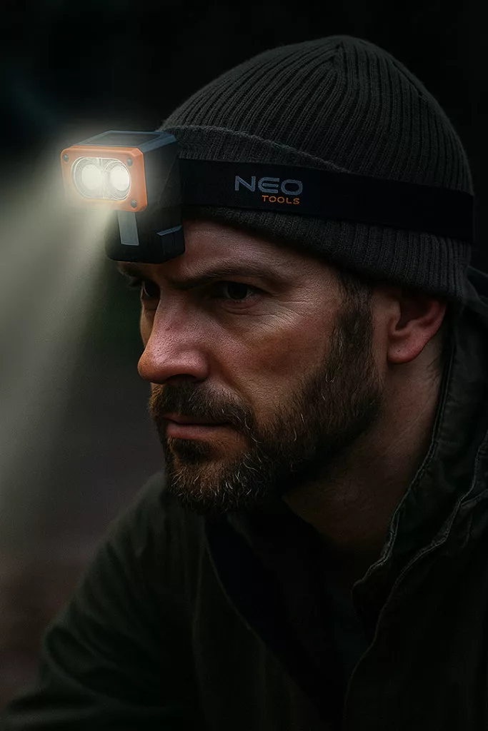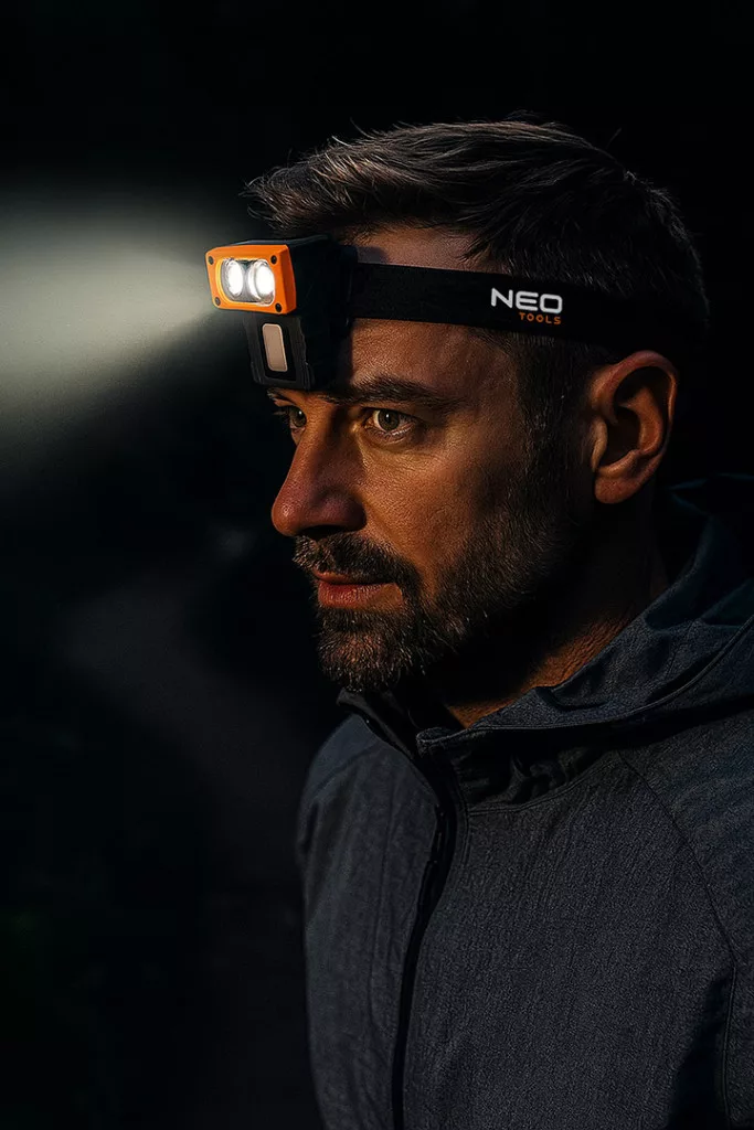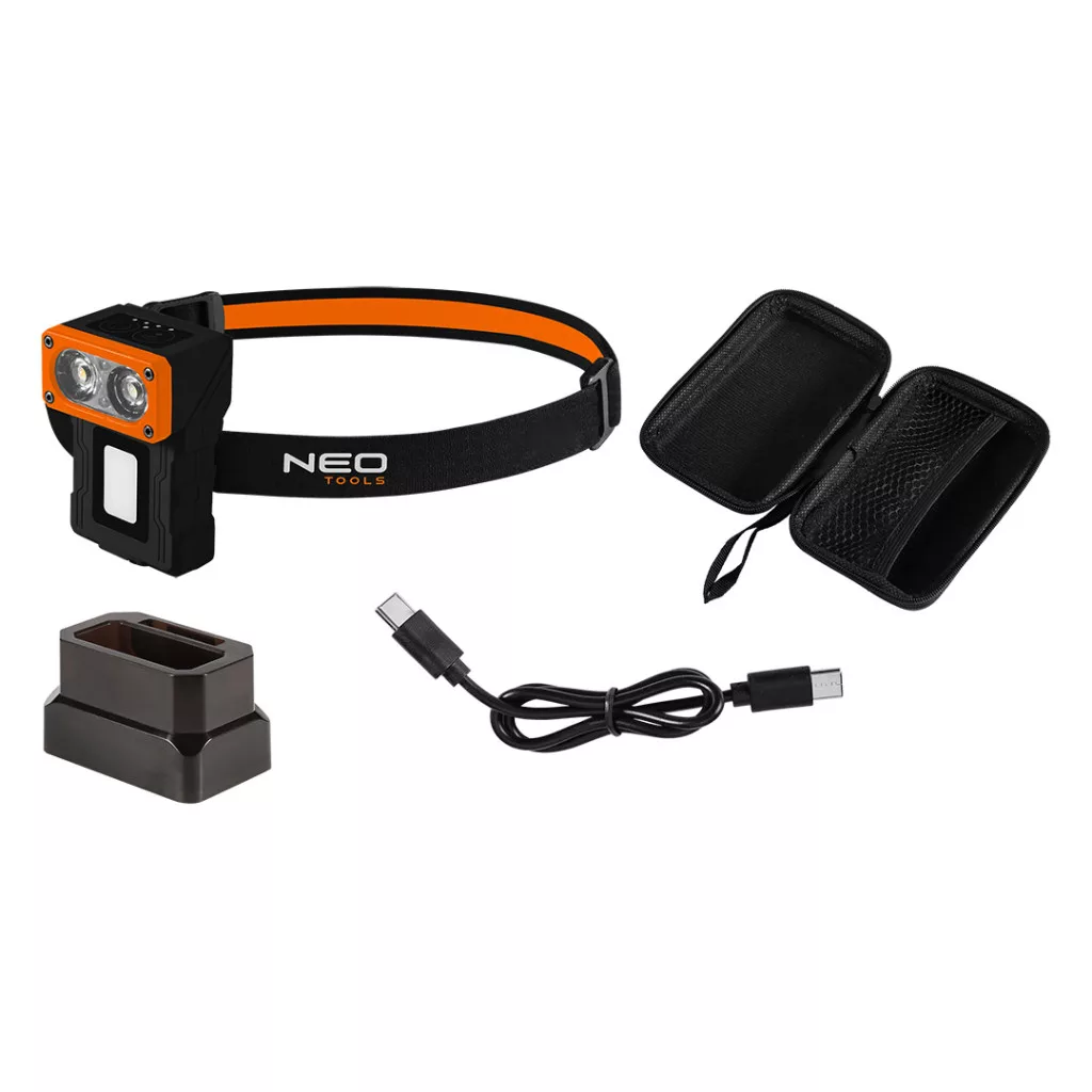 Neo fejlámpa, akkus, talppal, fejpánttal, tokkal, 500lm