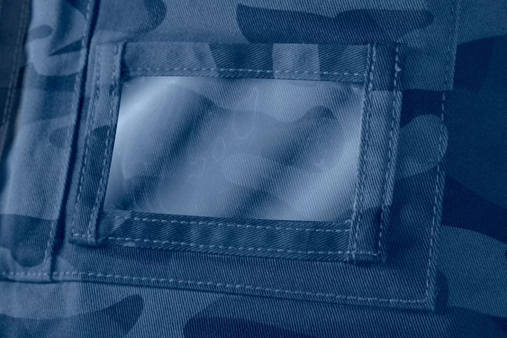 Neo kantáros munkanadrág tengerészkék terepmintás, CAMO Navy, 60% pamut + 40% poliészter, XS