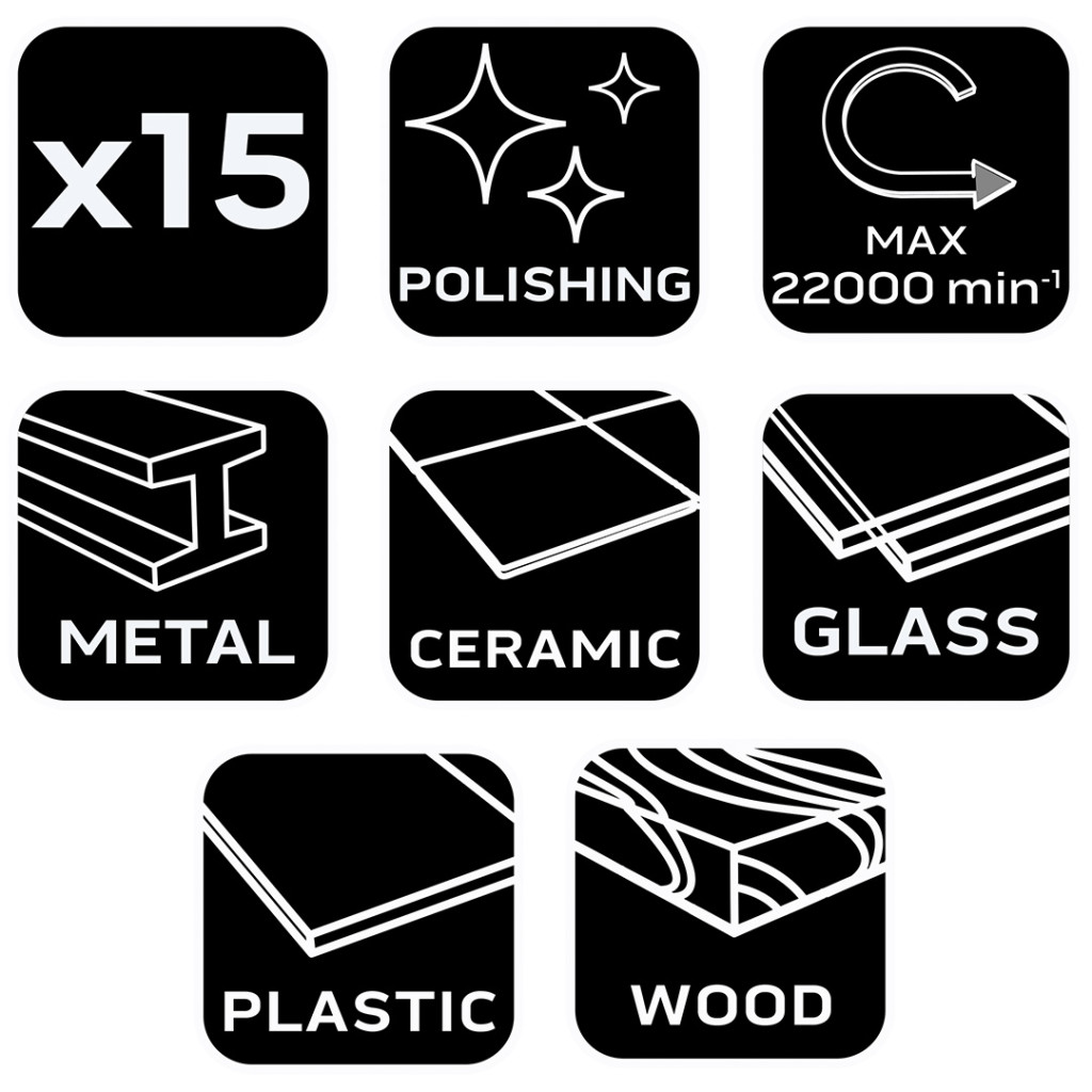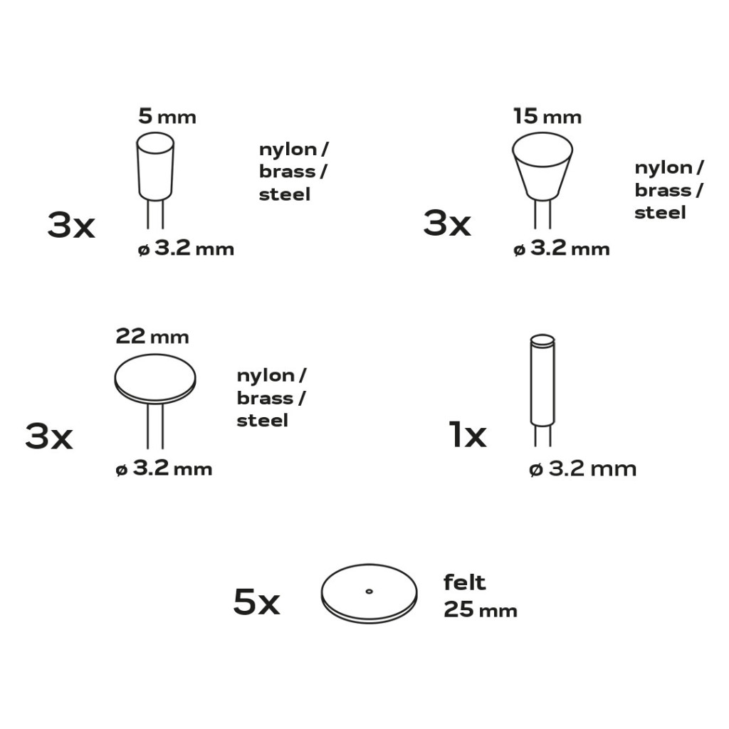 Neo kefe és polírozó készlet mini fúró- és csiszológéphez (15db/készlet)
