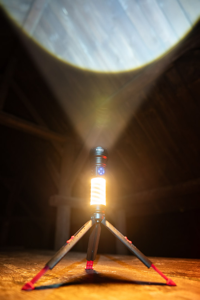 Neo kempinglámpa 2 funkciós, 470 lm, 1200 mAh akku, USB-C töltővezeték