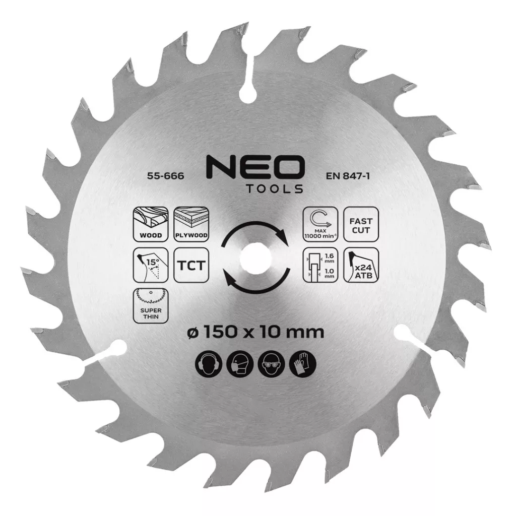 Neo körfűrészlap keményfém fogakkal, 150x10mm, 1.6mm, Z24, 58G008-hoz, ENERGY+
