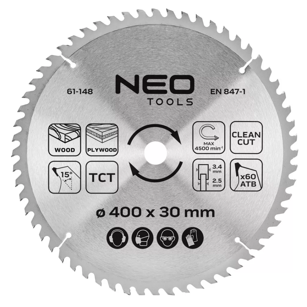 Neo körfűrészlap tiszta vágáshoz, 400x30mm, 60 fog,