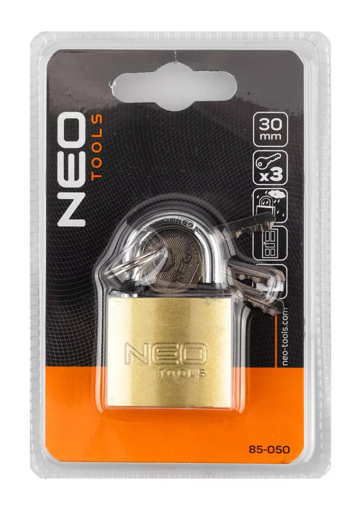 Neo lakat 30mm réz-acél, időjárásálló, 3 kulccsal,