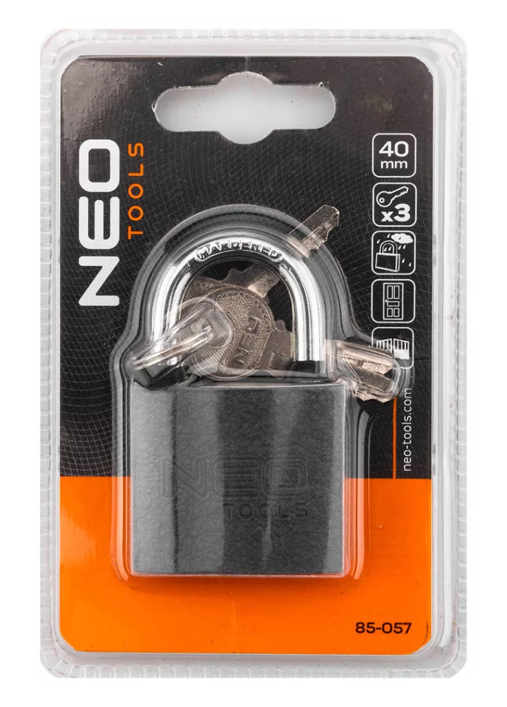 Neo lakat 40mm, festett öntvény-acél, időjárásálló, 3 kulccsal,