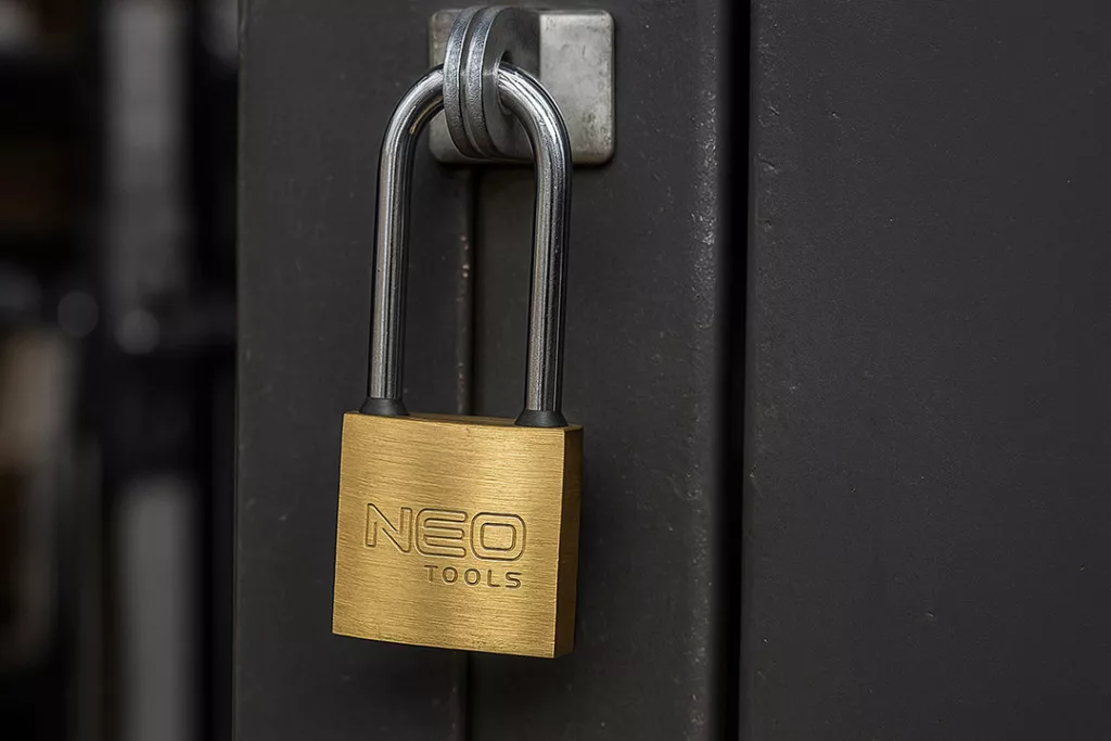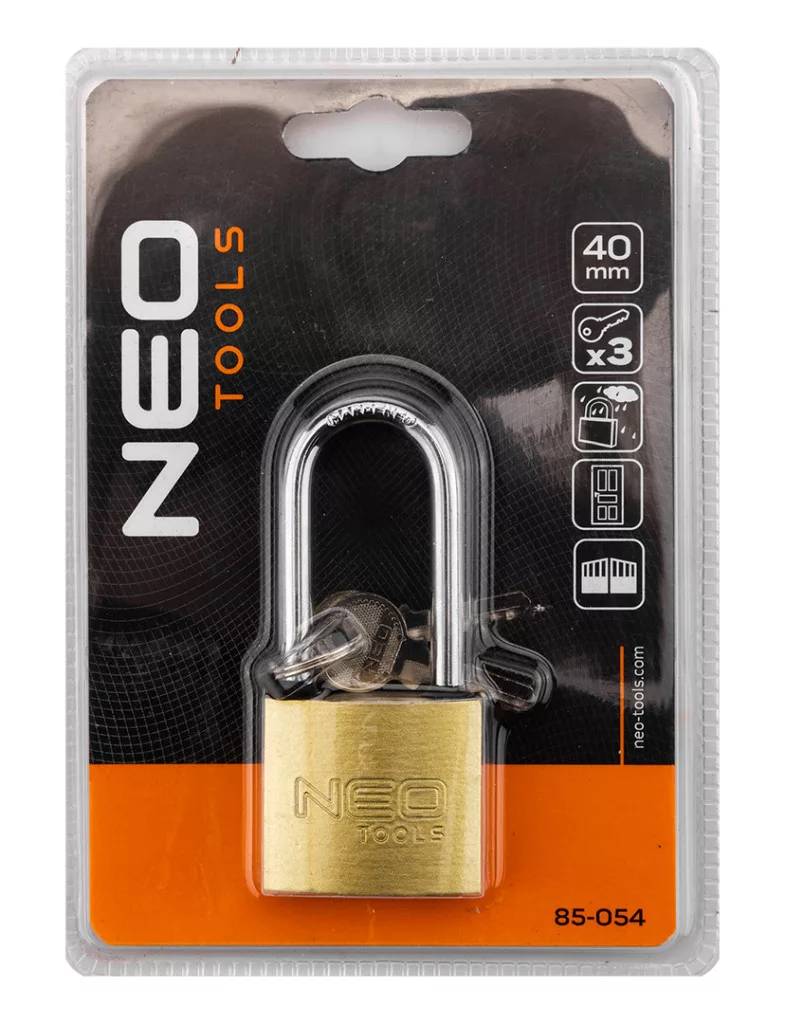 Neo lakat 40mm hosszúkengyeles, réz-acél, időjárásálló, 3 kulccsal,
