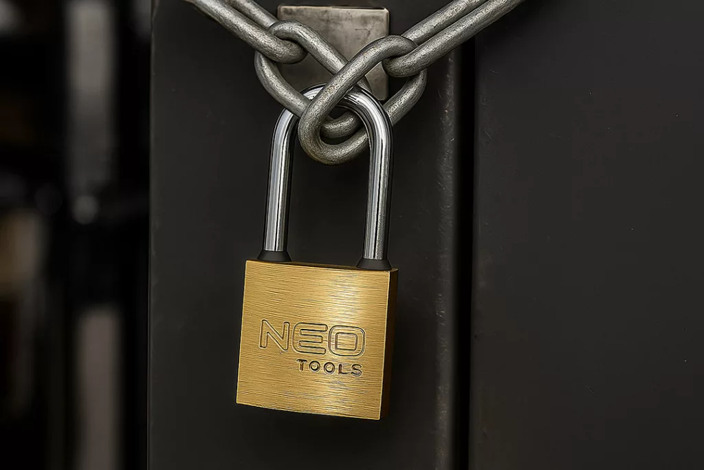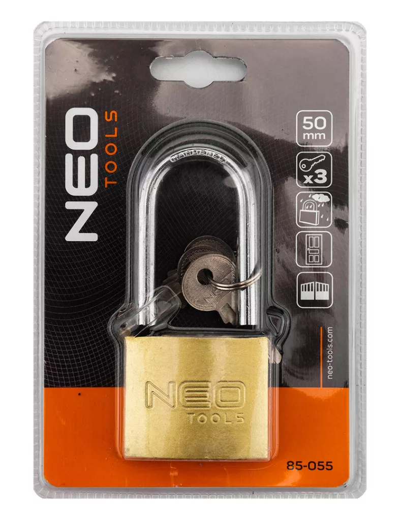Neo lakat 50mm hosszúkengyeles, réz-acél, időjárásálló, 3 kulccsal,