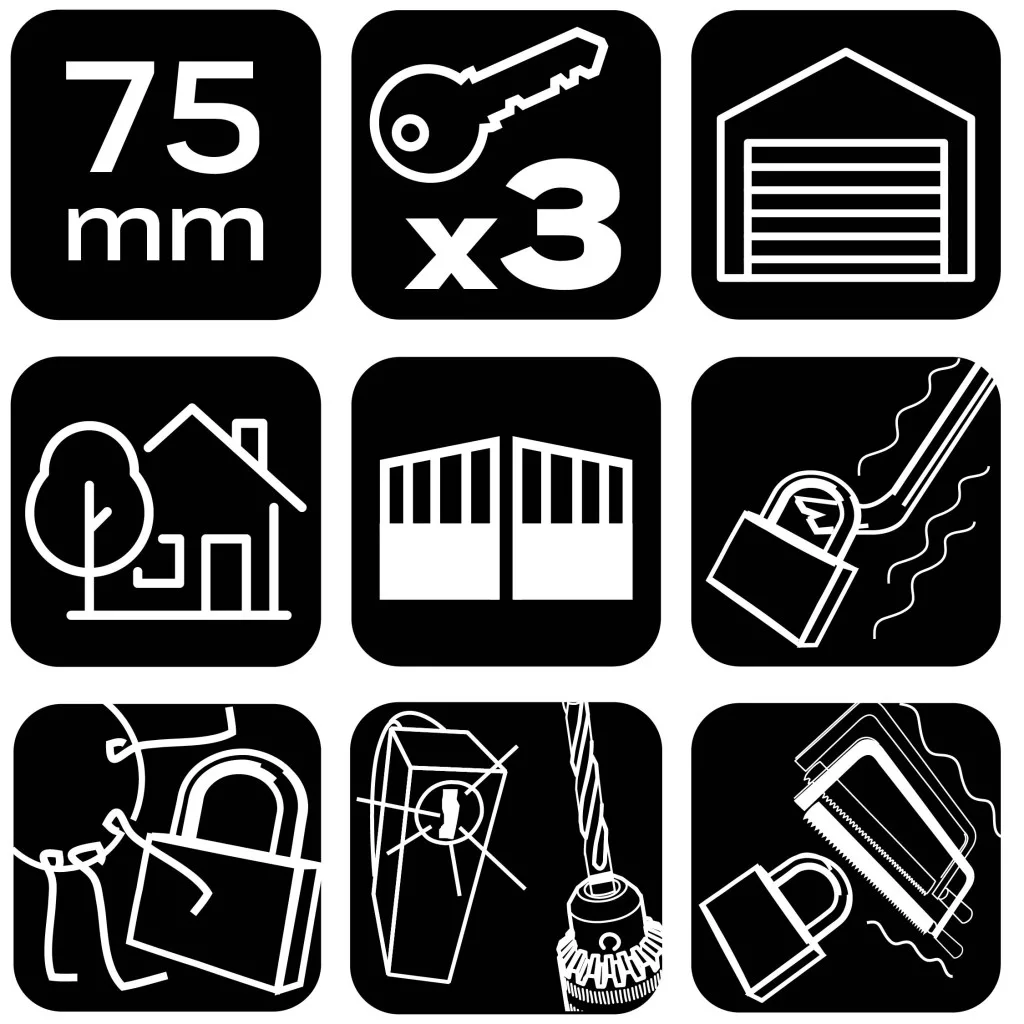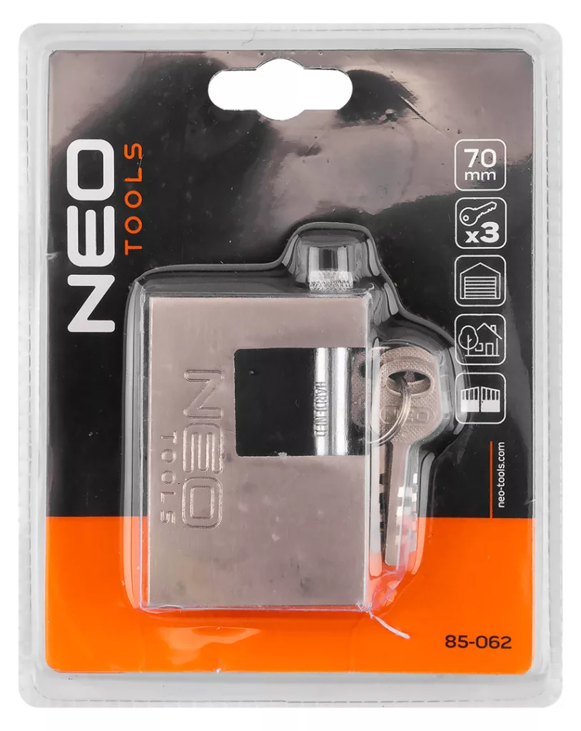 Neo lakat 70mm oldalcsapos, rézöntvény-acél, időjárásálló, 3 kulccsal,