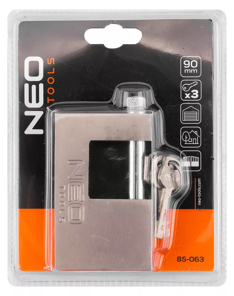 Neo lakat 90mm oldalcsapos, rézöntvény-acél, időjárásálló, 3 kulccsal,