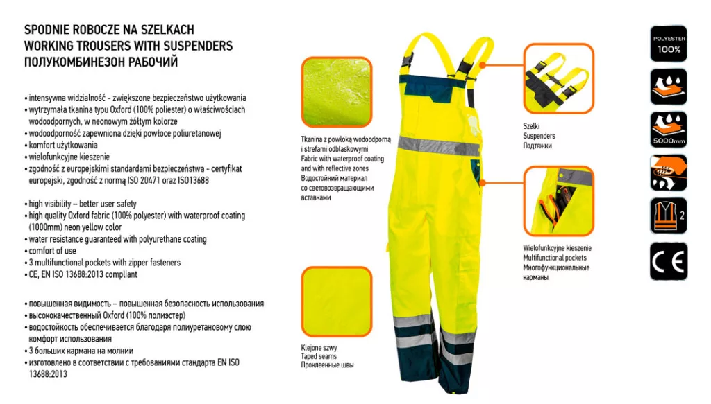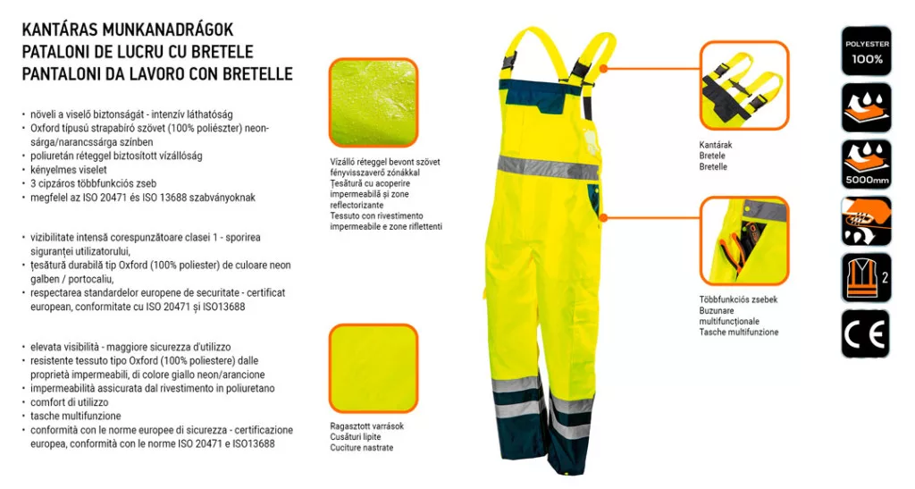Neo láthatósági kantáros munkásnadrág, sárga, S