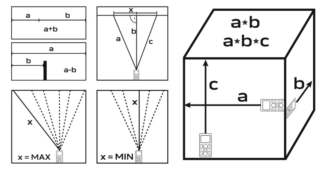 Neo lézeres távolságmérő, hatótáv:100m, IP54 fröccsenő víz védelem, gumírozott ház, multifunkciós