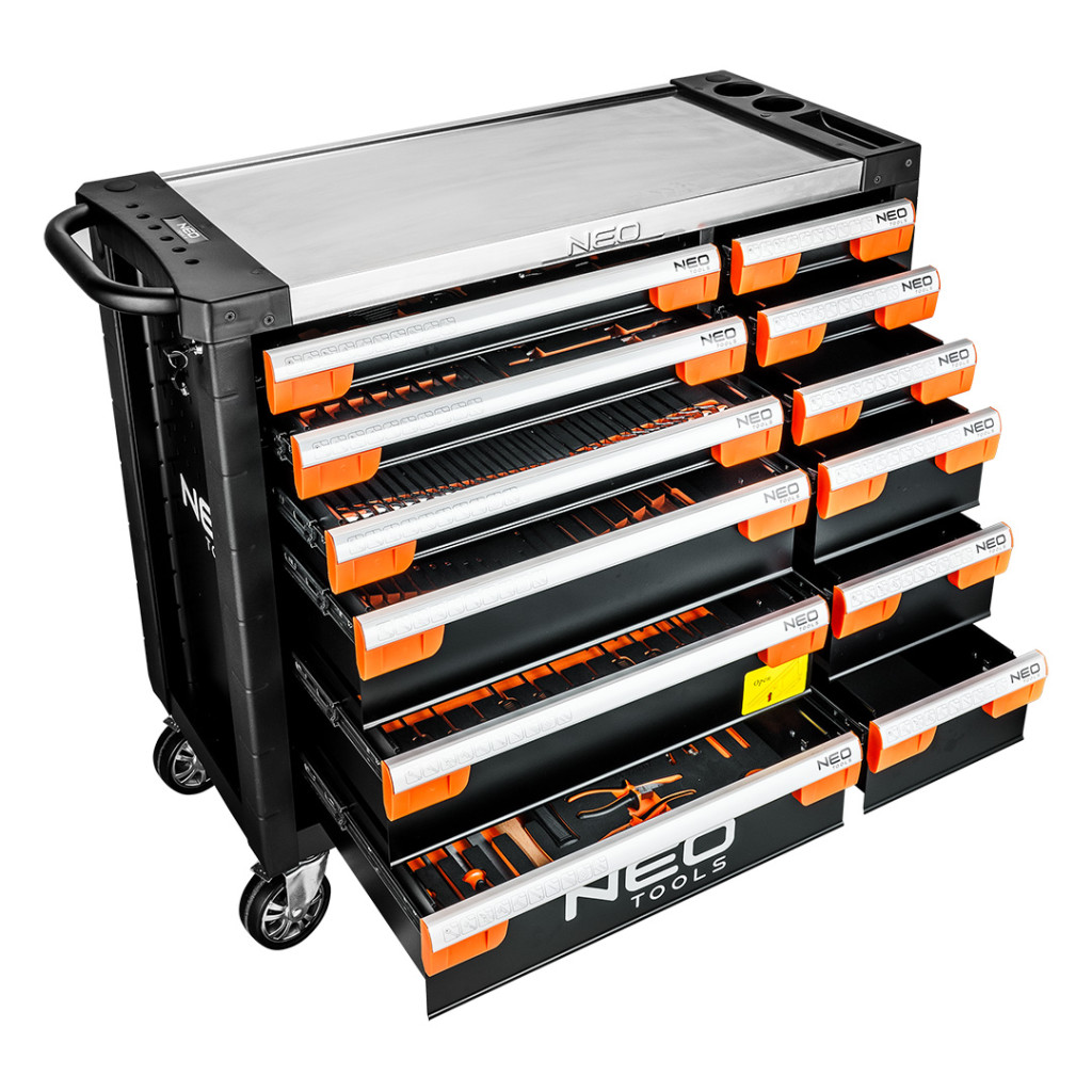 Neo műhelykocsi PRO, 12 fiókos, 358 szerszámmal, szerszámkocsi