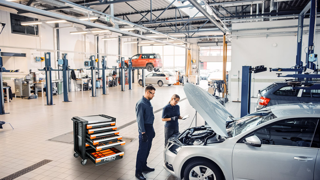 A Neo Tools műhelykocsi méretei 775 x 465 x 978 mm, magassága kerekek nélkül 820 mm. Zárható fiókokkal, oldalsó perforációval rendelkezik a Neo Tools kampók számára, alumínium teteje helyet biztosít szerszámoknak, alkatrészeknek és tartozékoknak, a fiókok frontján pedig tájékoztató matricák találhatók. A fiókok zárszerkezettel vannak ellátva, és 100%-os nyitáshosszt tesznek lehetővé. A kocsi robusztus SPCC acélszerkezetű. Minden szakember számára ajánljuk. A PRO Moto Expert sorozat a legigényesebb felhasználóknak is megfelel.