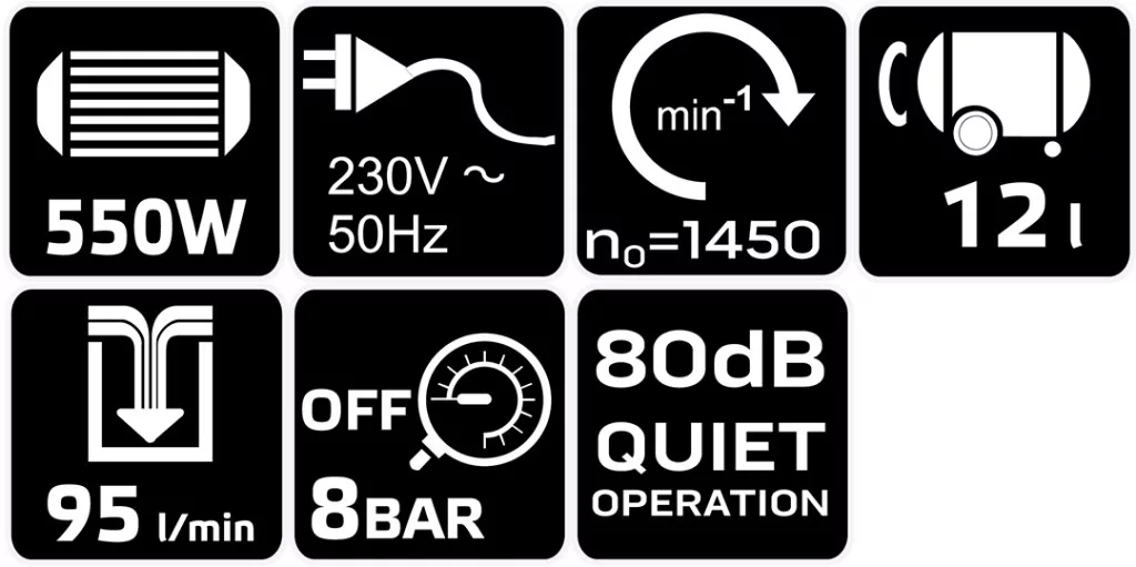 Neo olajmanetes kompresszor, 12 l, extra csendes, kefementes motorral, 95L/perc, 8bar