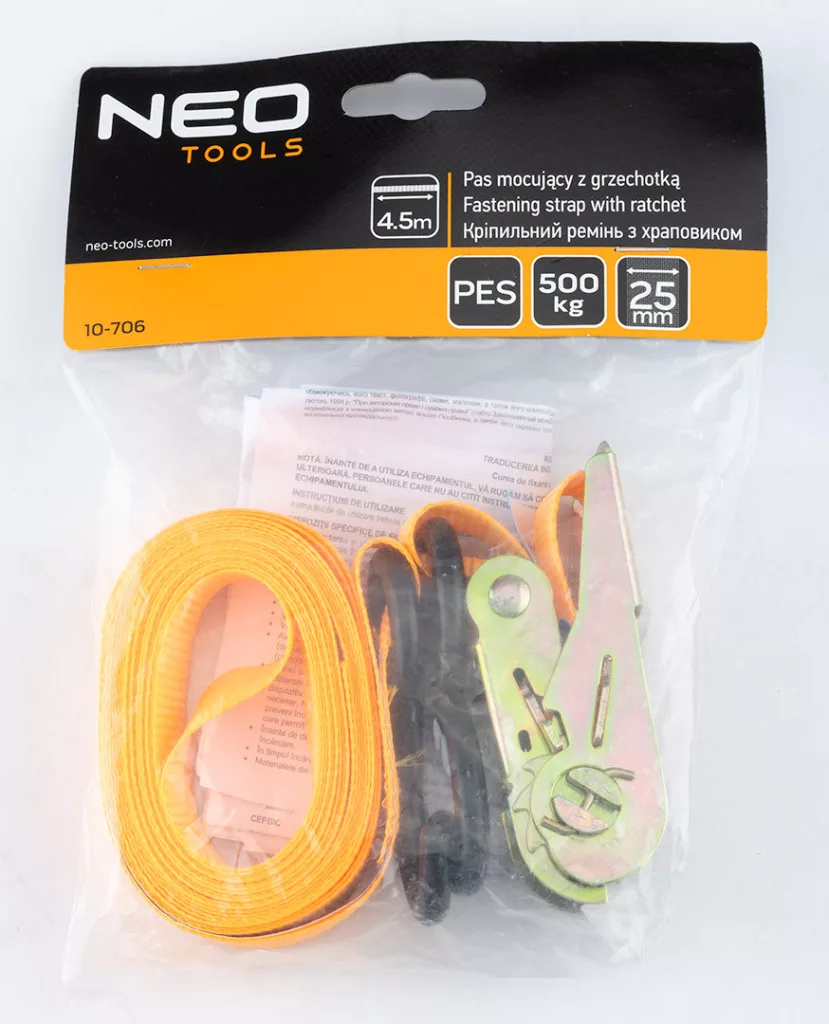 Neo rakományrögzítő racsnis heveder 4,5m/25mm, 500kg