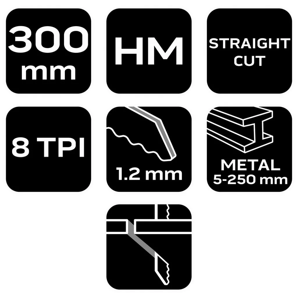 Neo szalagfűrészlap egyenes vágásokhoz vastag fémekhez, 5–250 mm, 300mm, HM