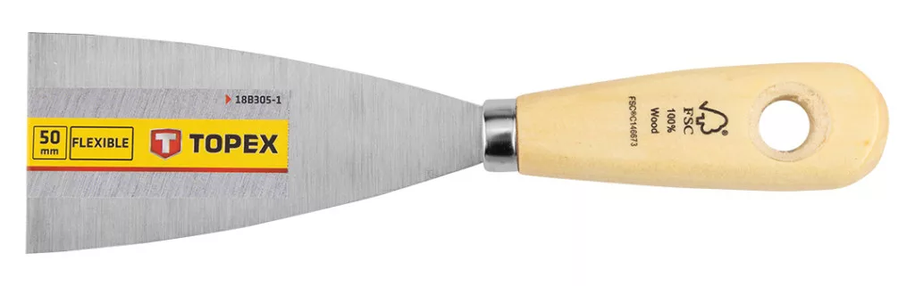 Topex festékkaparó, spakli, 50mm, rozsdamentes acél, fanyelű